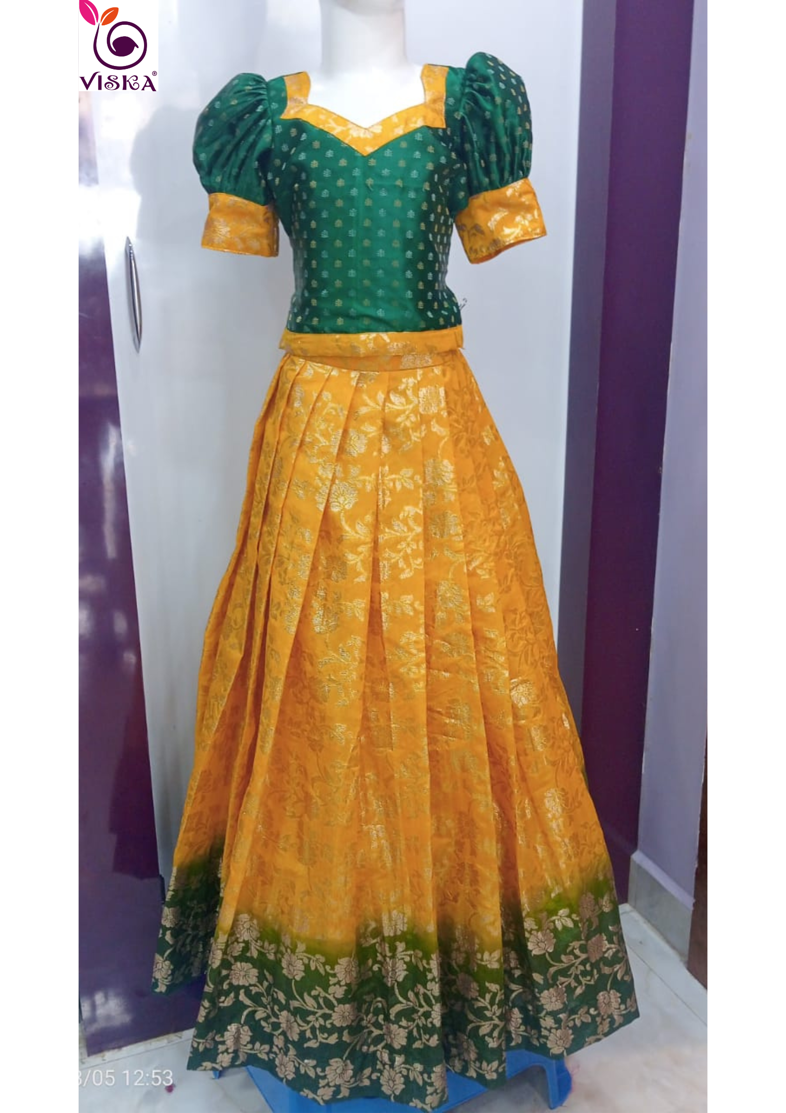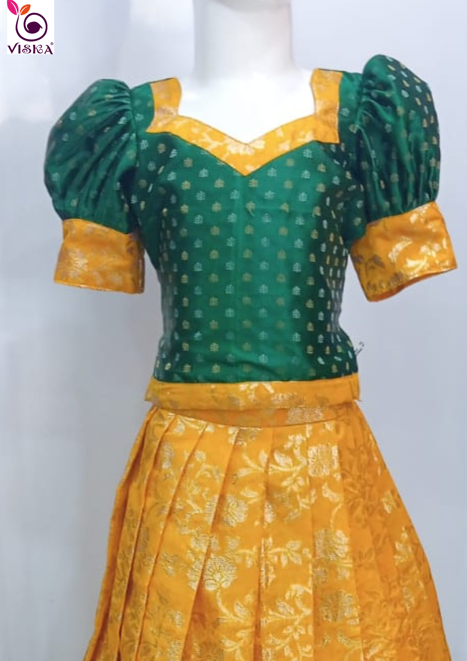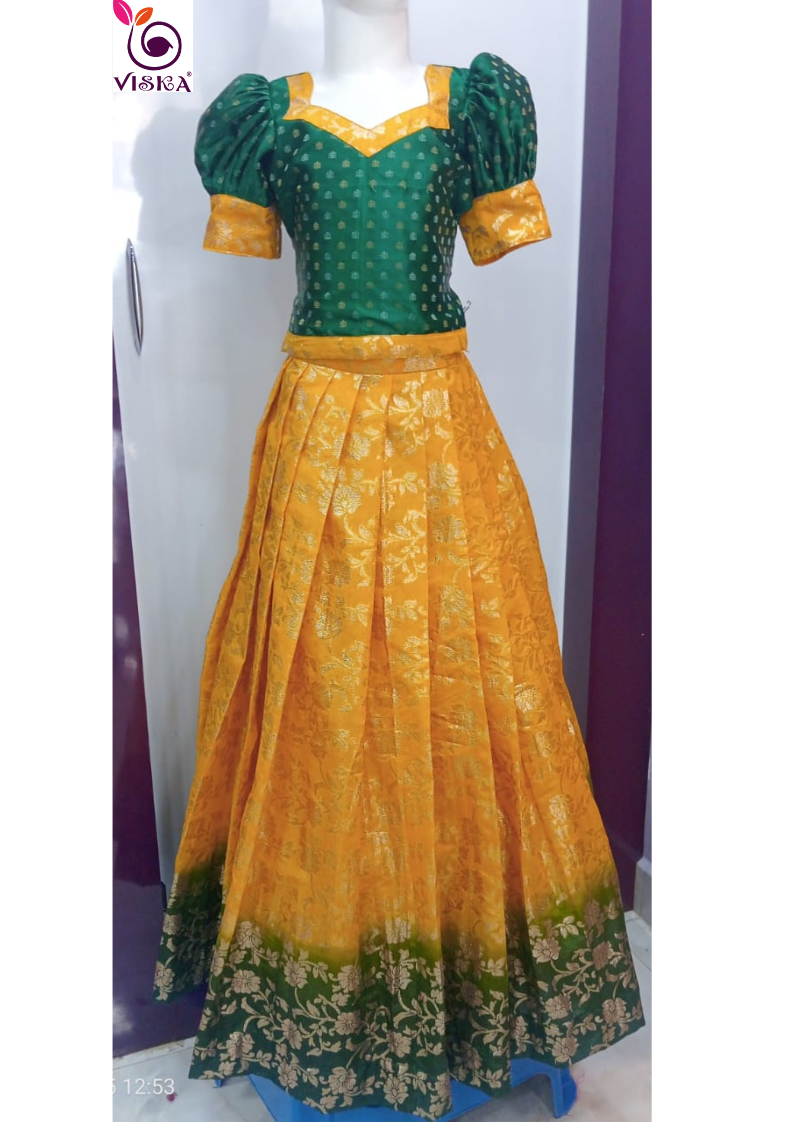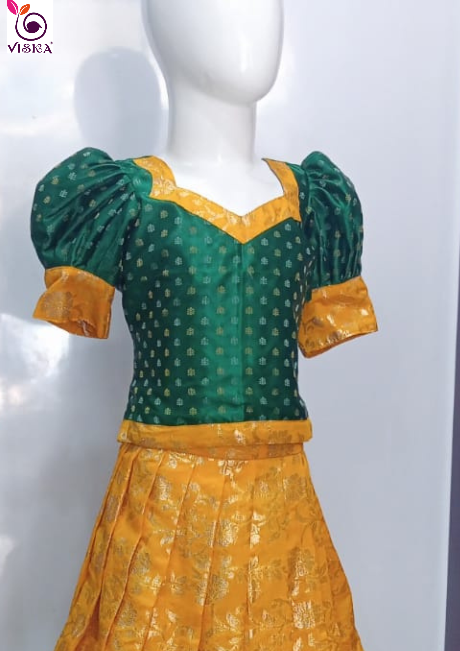 Viska Zari Tissue Plain Saree with rich Pallu and mustard green zari woven border