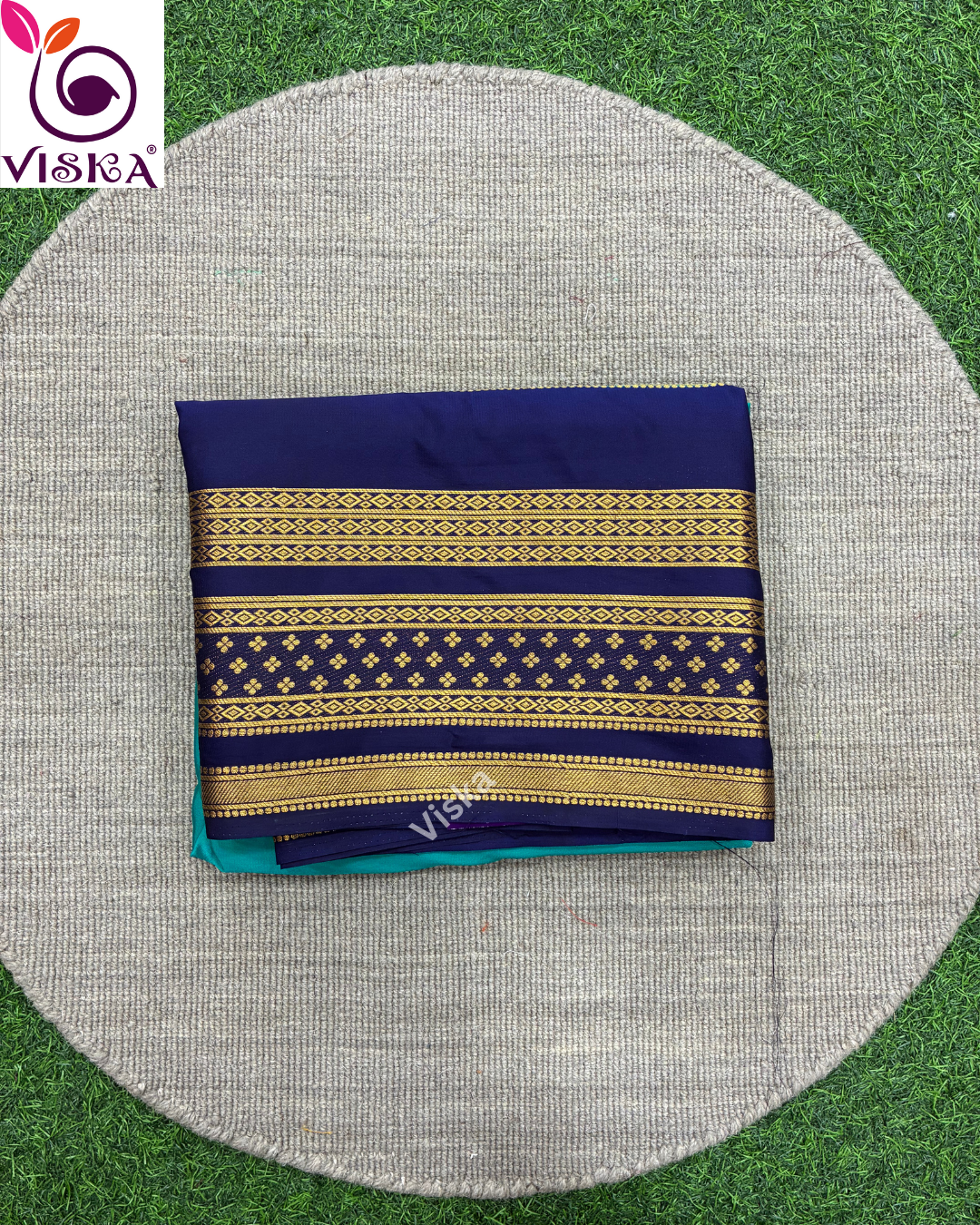 This saree is made of Mysore crepe silk in a rich Sky Blue and Royal Blue Color.