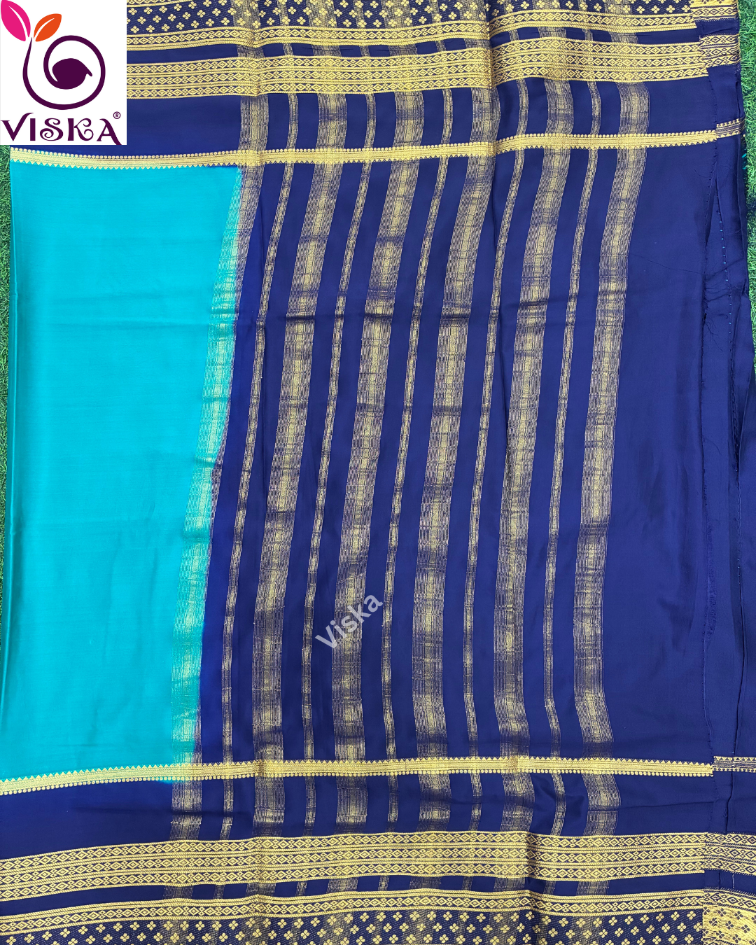 Semi Mysore Crepe Silk Saree Sky Blue and Royal Blue