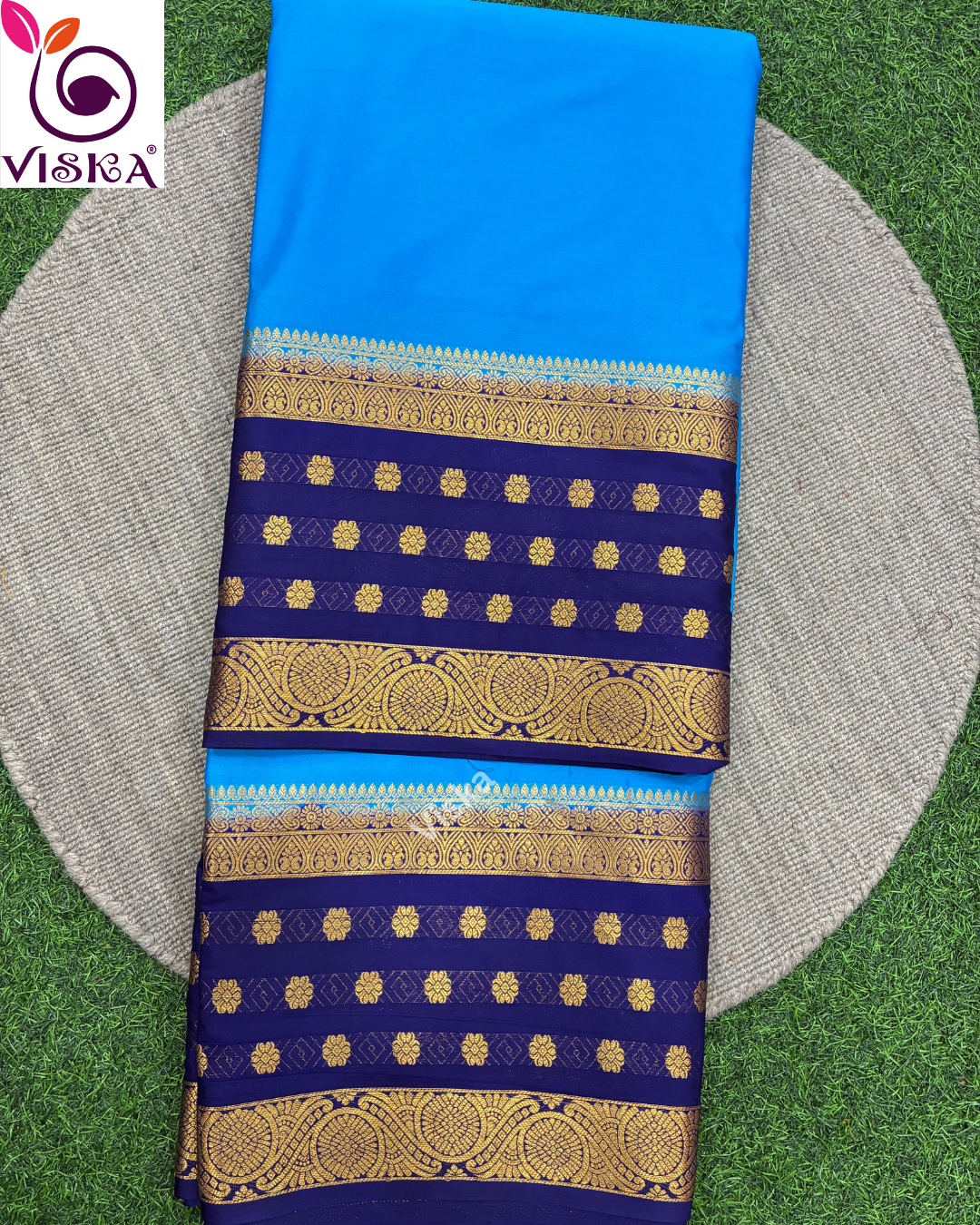 Semi Mysore Crepe Silk Saree Sky Blue and Royal Blue with Butta Border