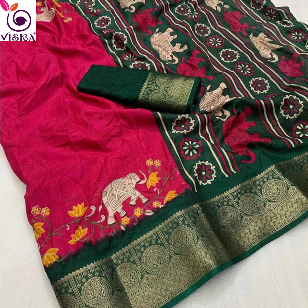 Pink with Bottle Green Semi Dola Saree