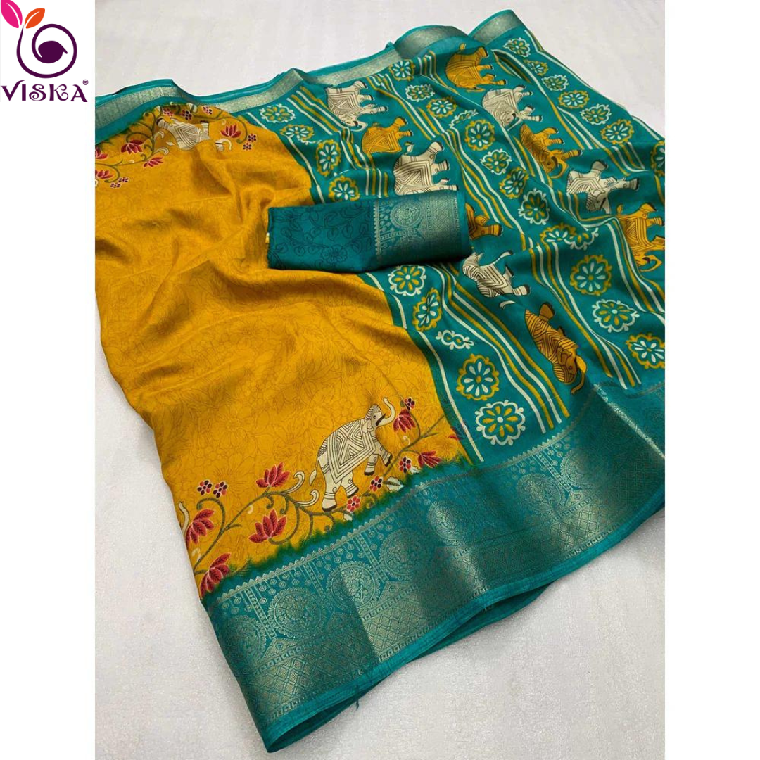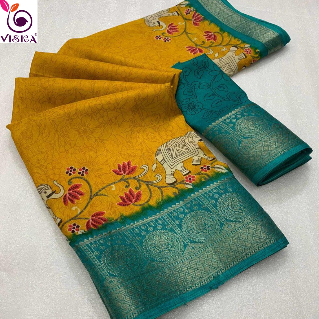 Mustard Yellow Semi Dola Saree