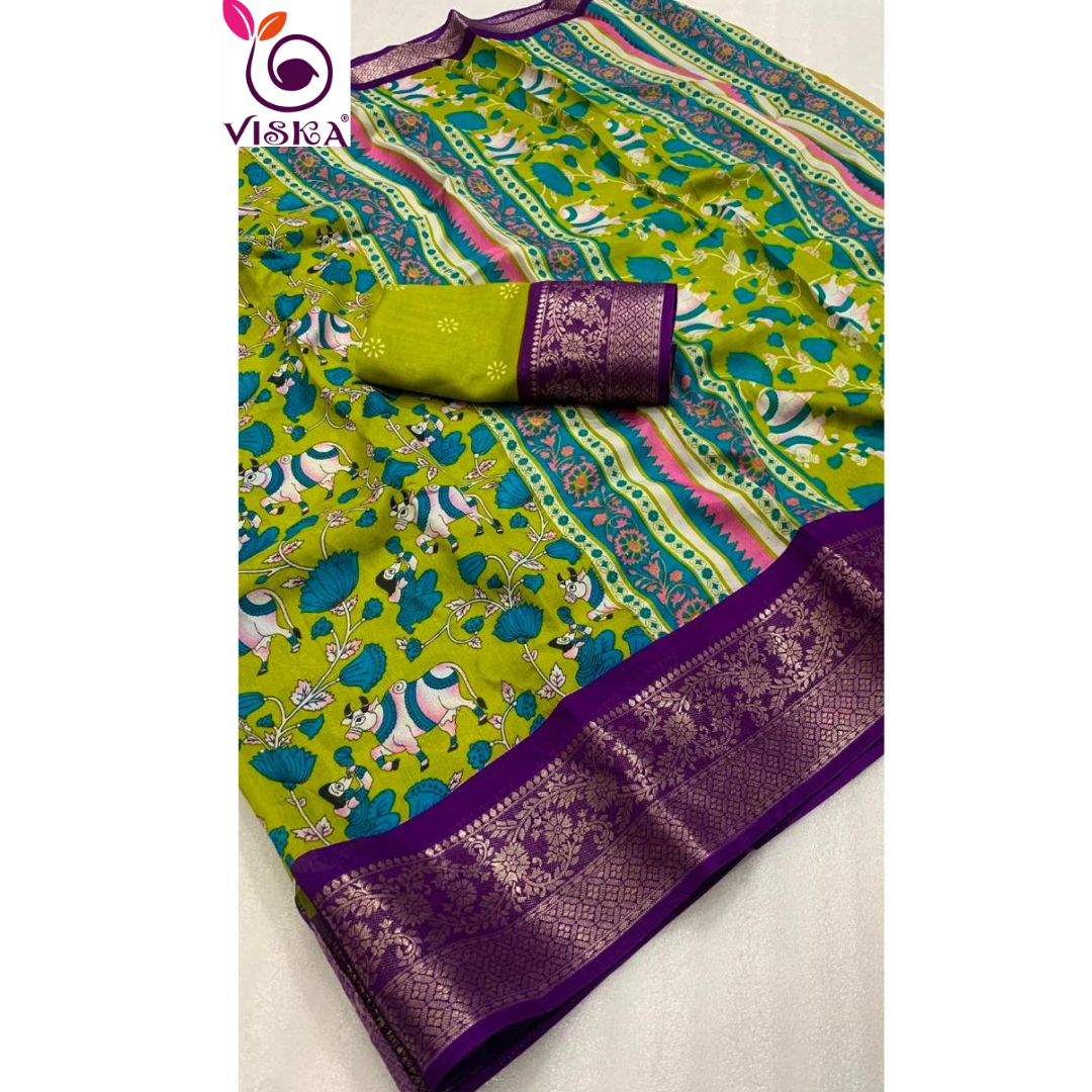 Green with purple Semi dola saree