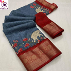 This Grey with Red Semi Dola Saree is a beautiful addition to your wardrobe.
