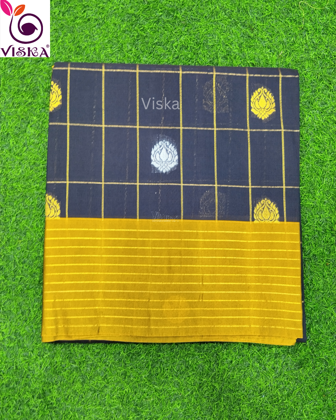 Gadwal Cotton SIlk Saree Black and Gold with rich Pallu and zari woven border