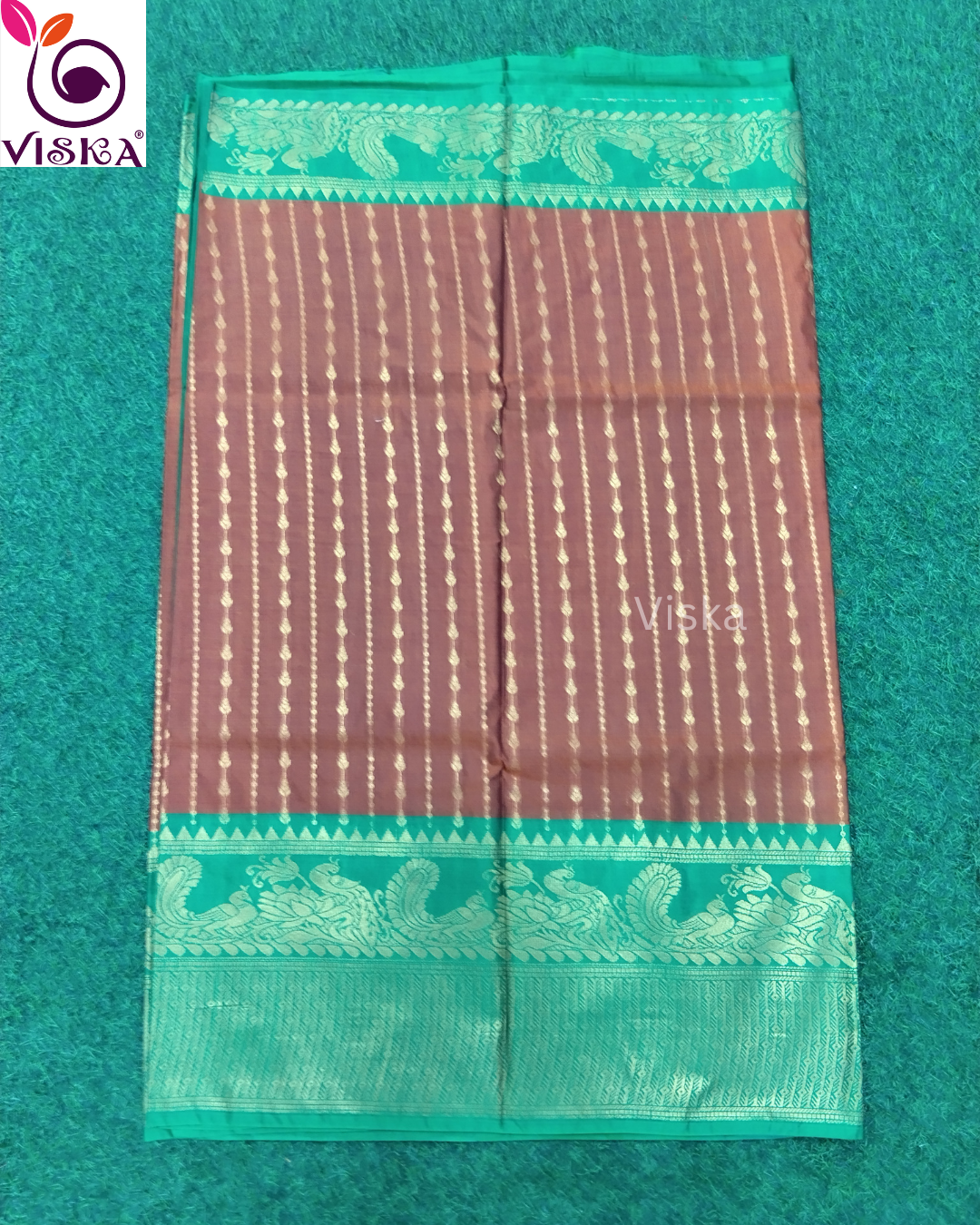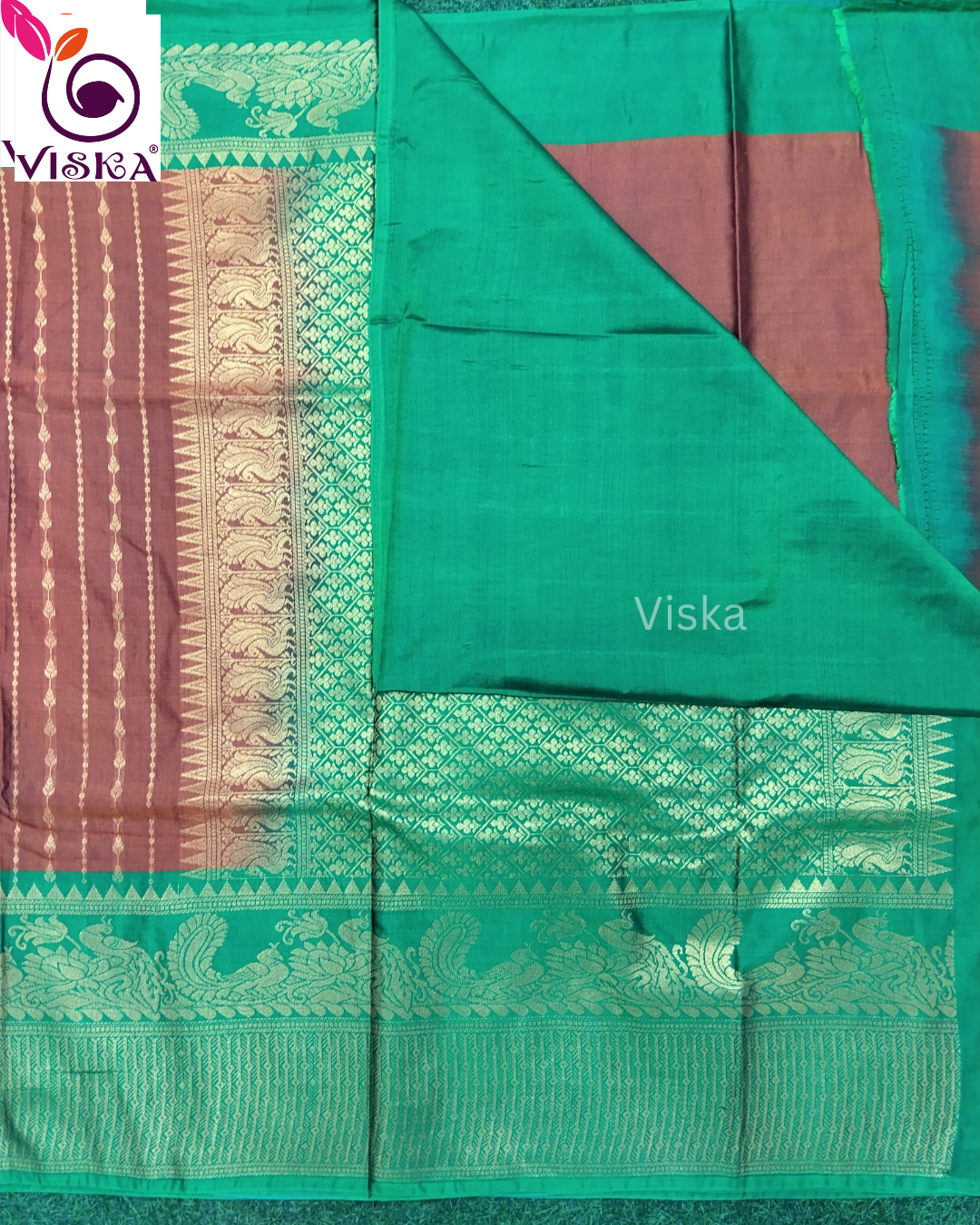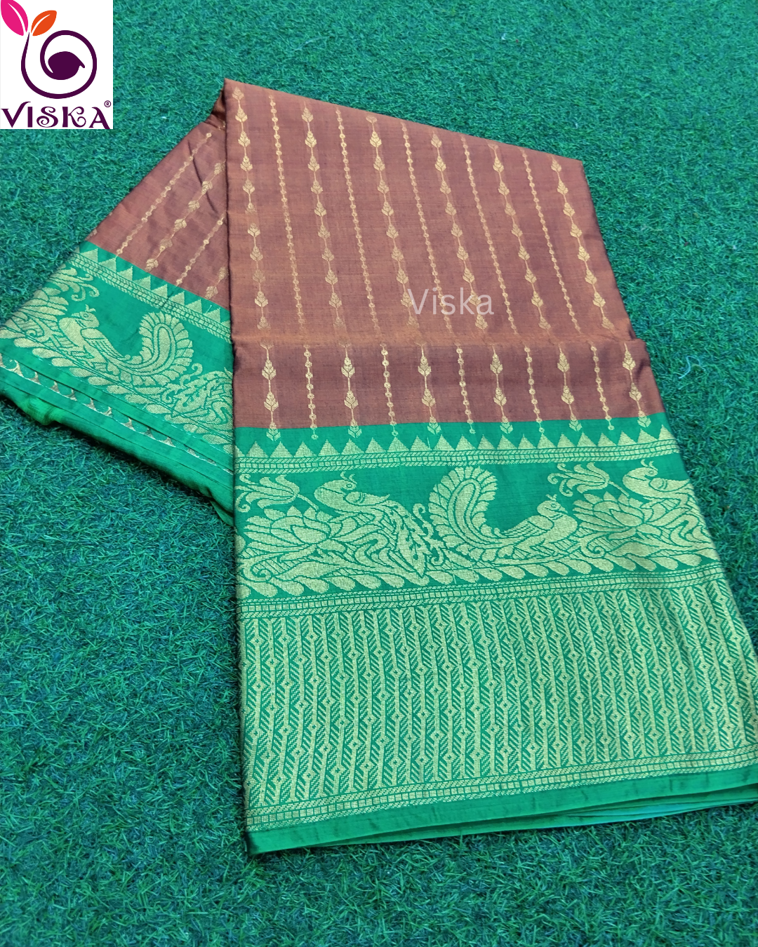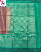 Gadwal Cotton SIlk Saree Brown and Green with rich Pallu and zari woven border