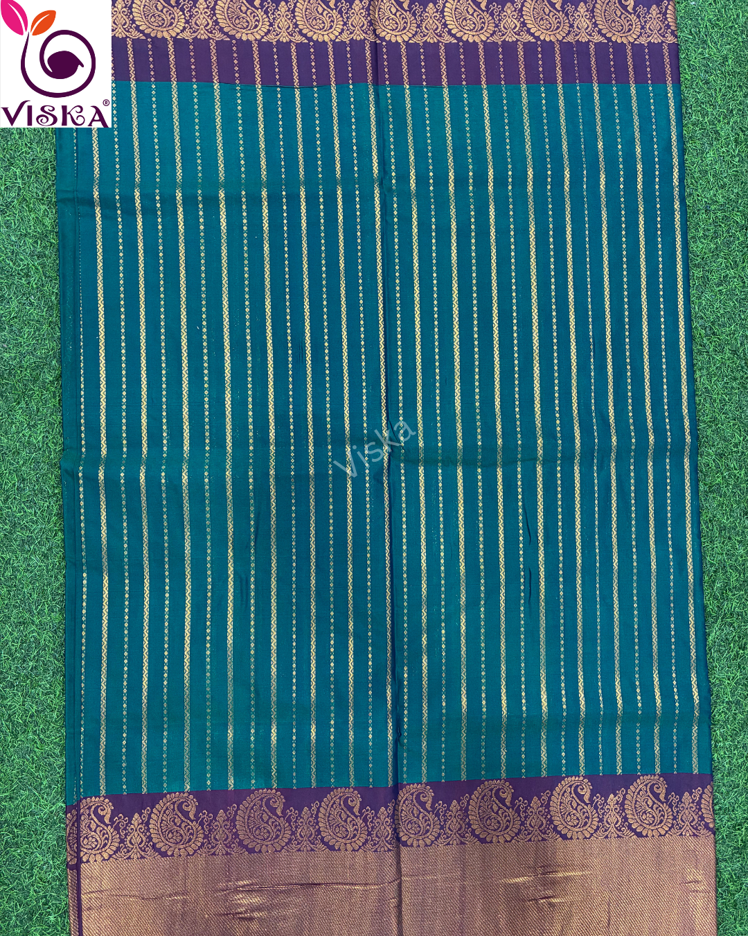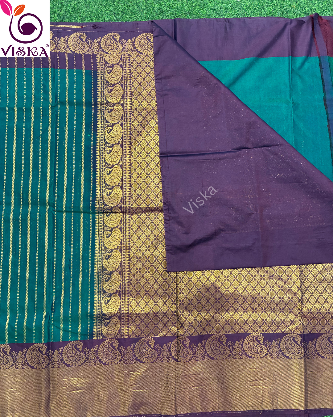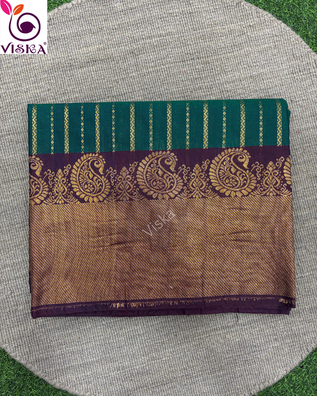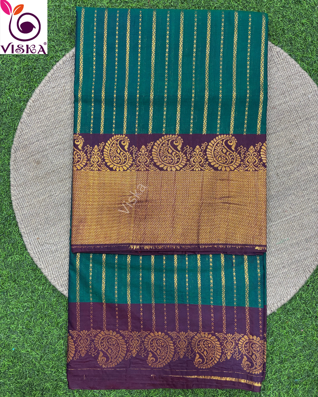 Gadwal Cotton SIlk Saree Dark Green and Brown with rich Pallu and zari woven border
