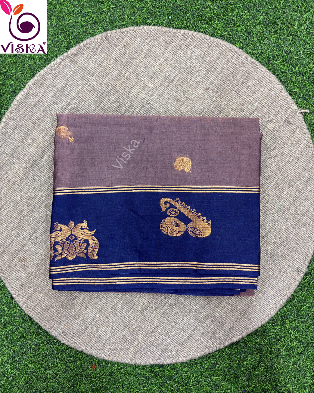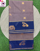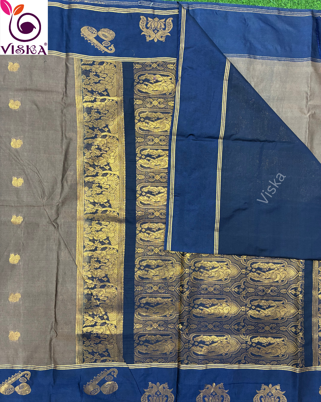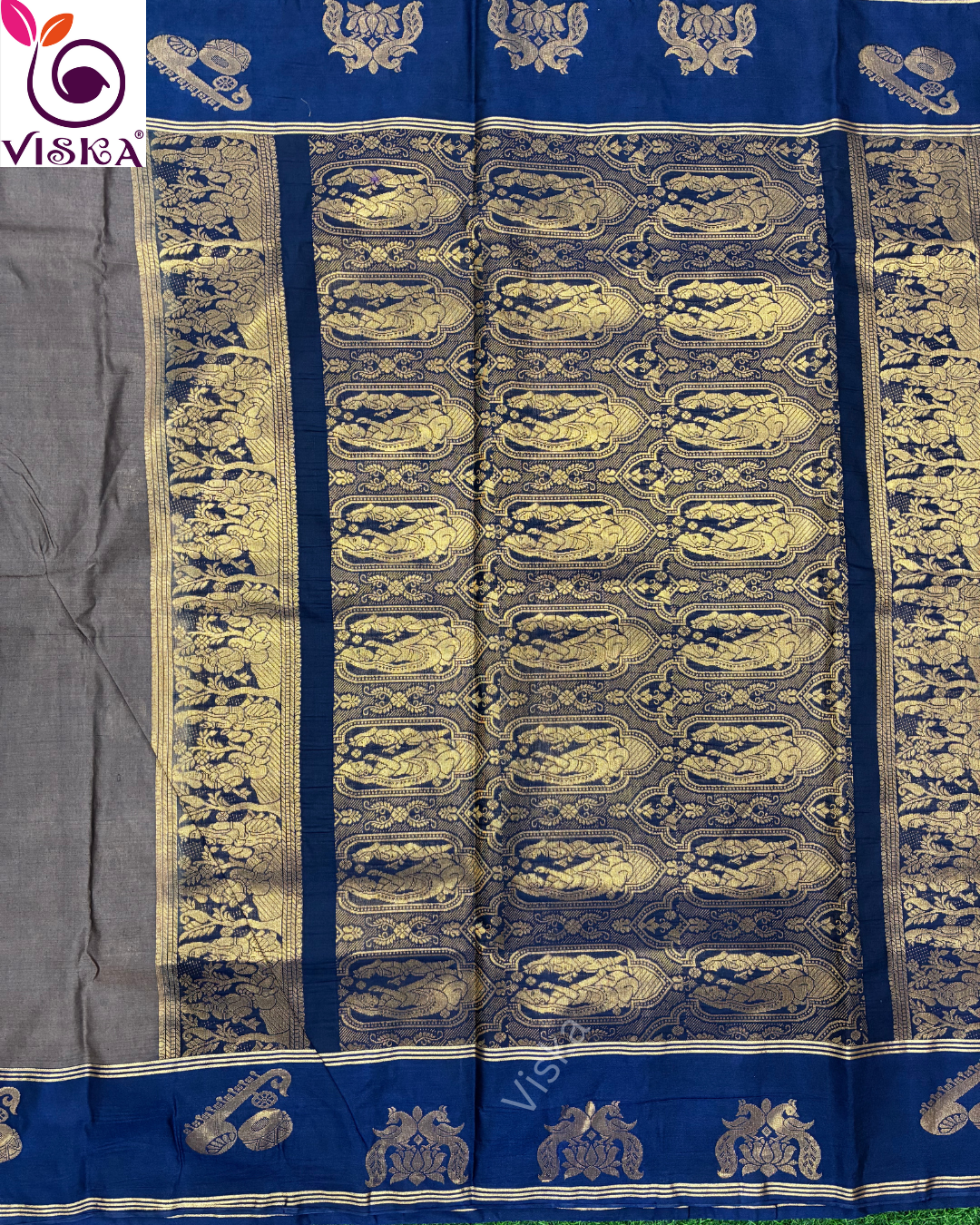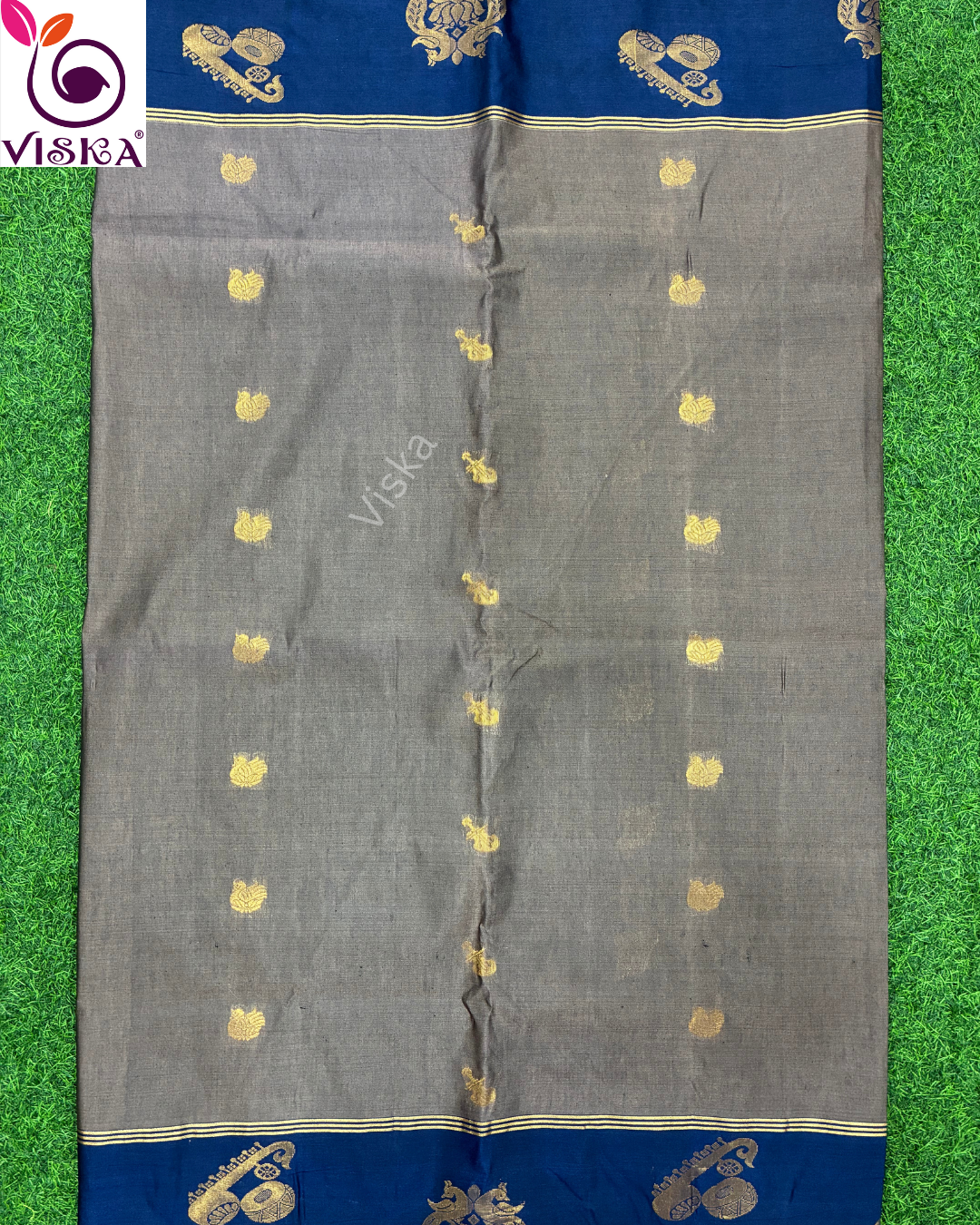 Gadwal Cotton SIlk Saree Grey and Blue with rich Pallu and zari woven border