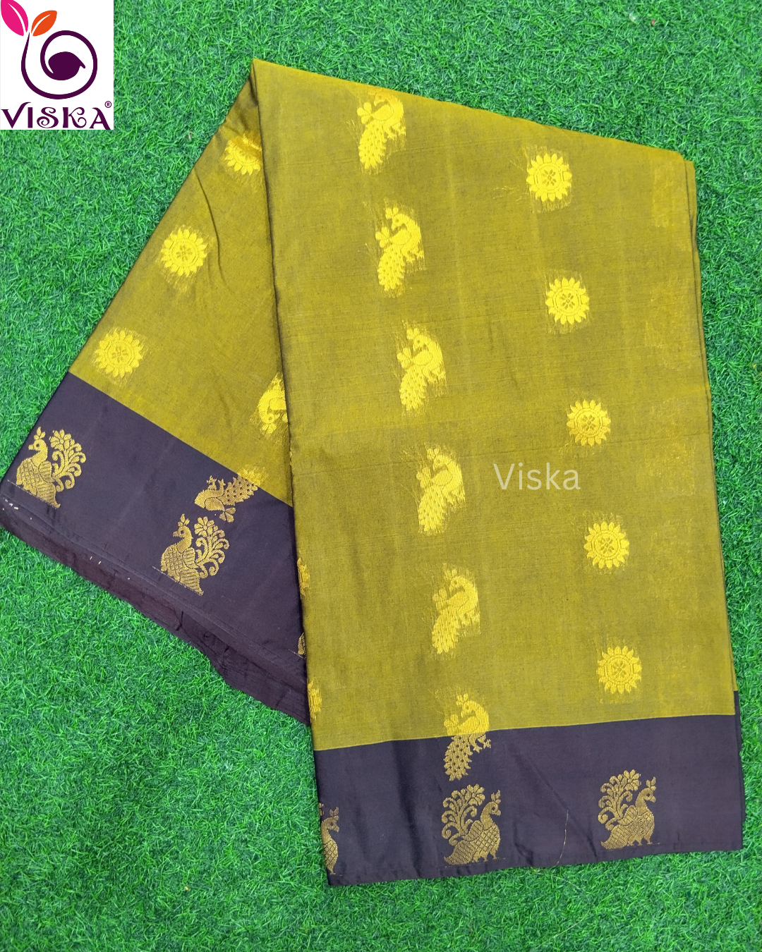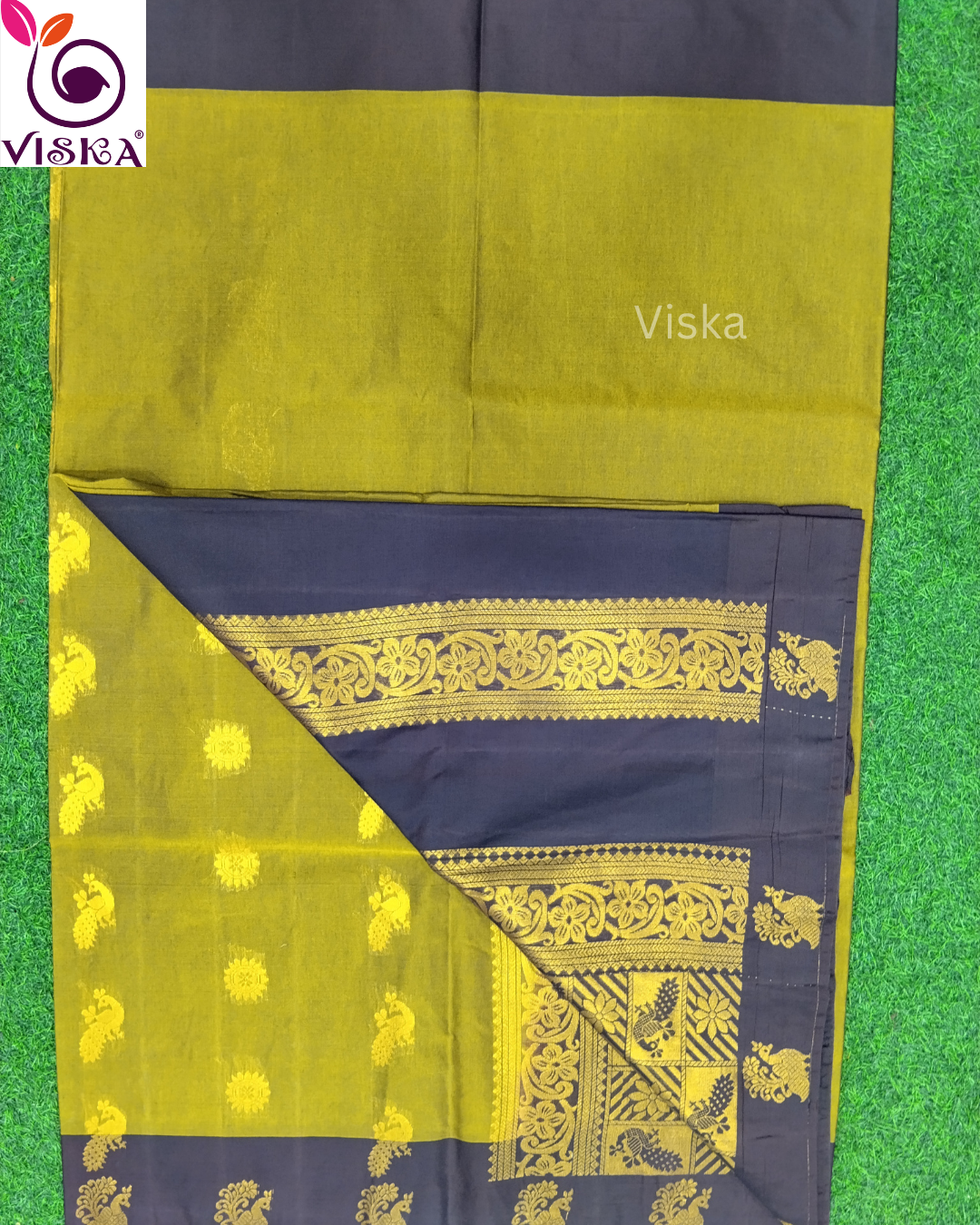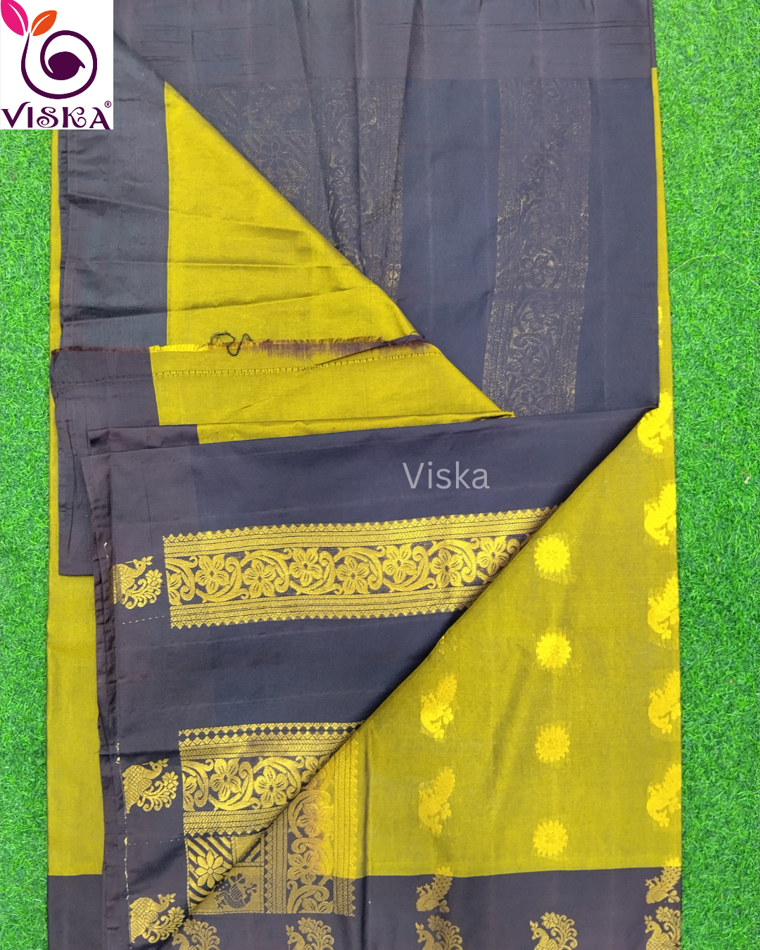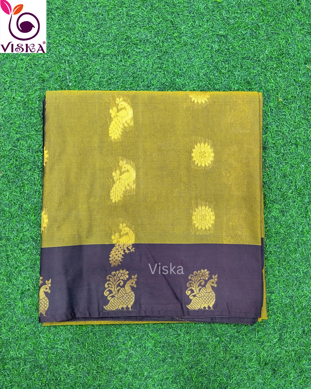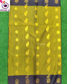 Gadwal Cotton SIlk Saree Mustard and brown with rich Pallu and zari woven border