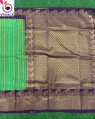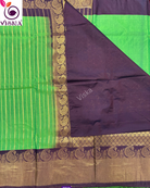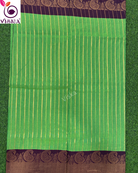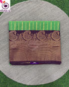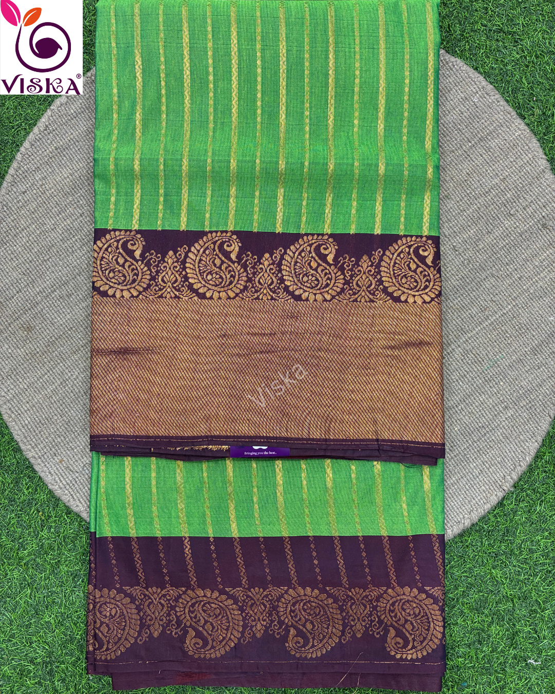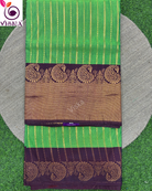 Gadwal Cotton SIlk Saree Parrot Green and Brown with rich Pallu and zari woven border
