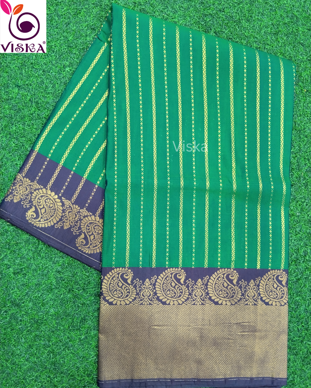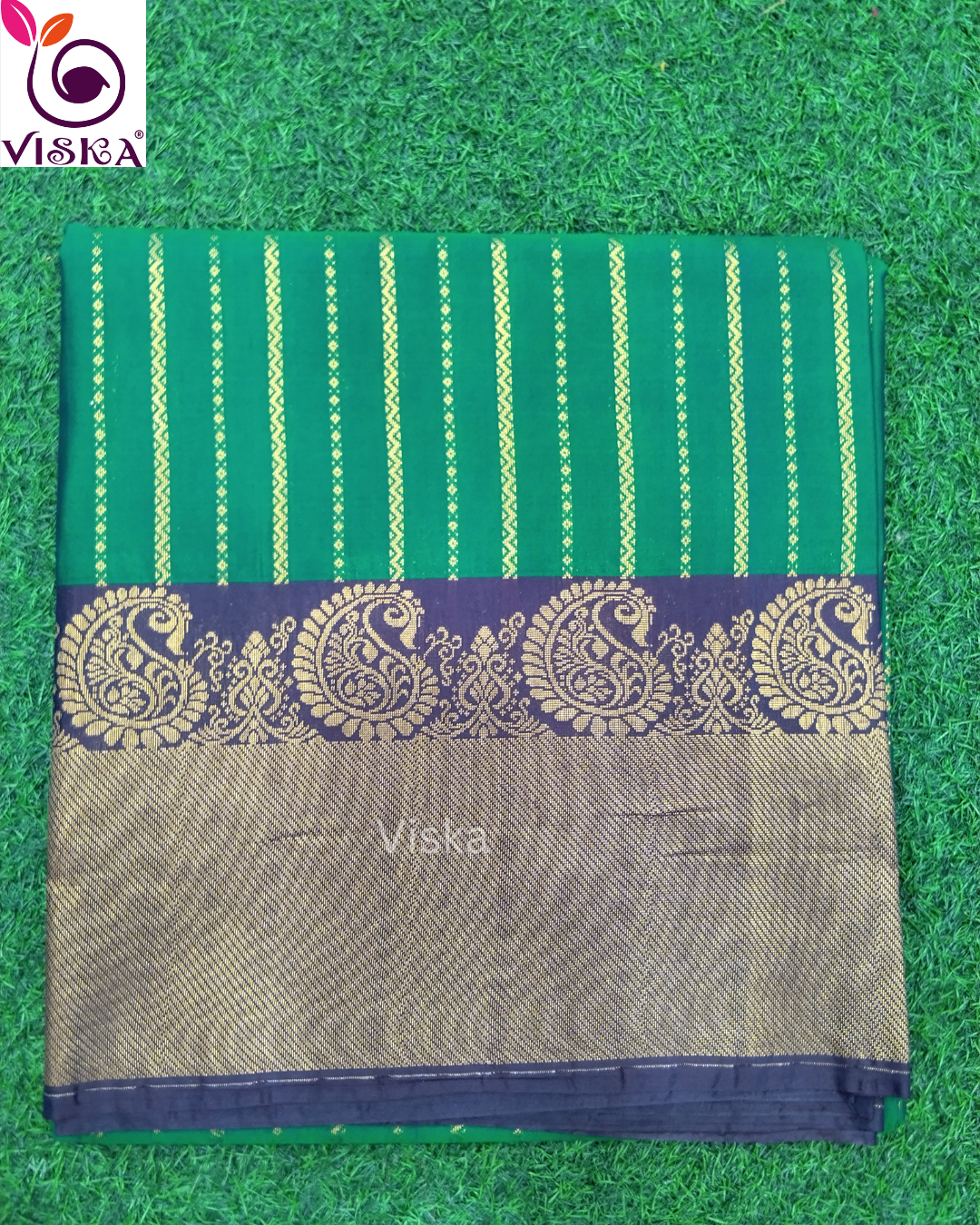 Gadwal Cotton SIlk Saree dark Green with rich Pallu and zari woven border