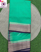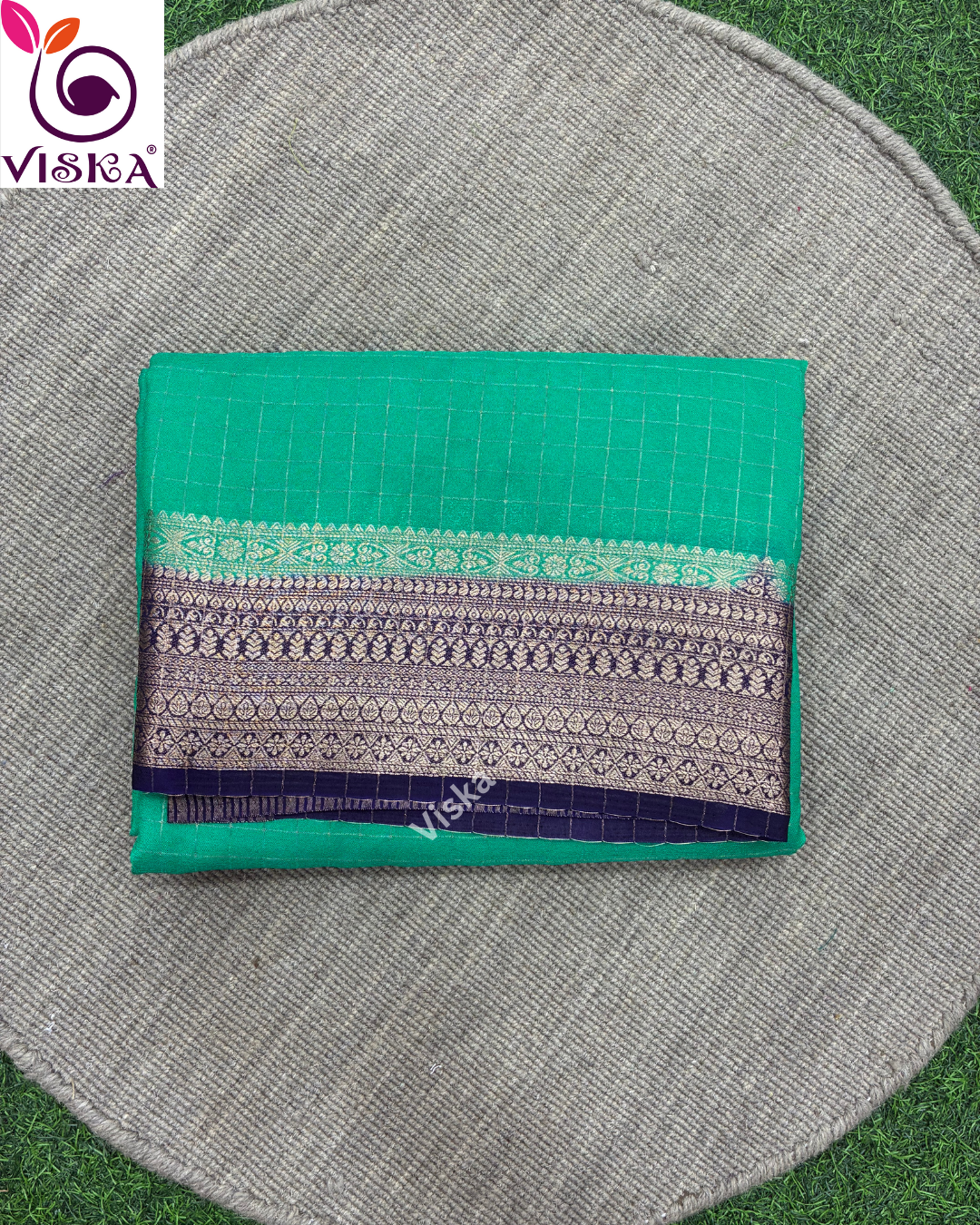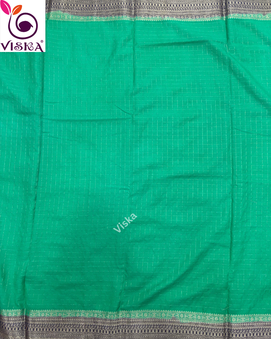 This saree is made of Mysore crepe georgette silk in a rich Green and Blue with checks Pattern.