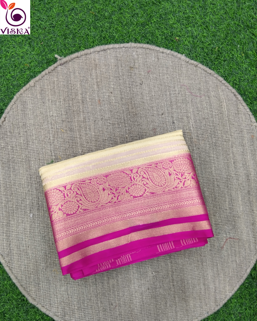 Mysore Crepe Georgette Silk Saree Off-white and Pink