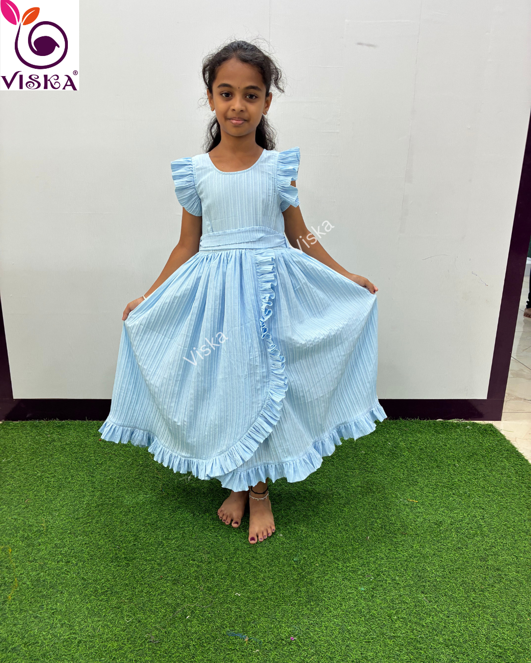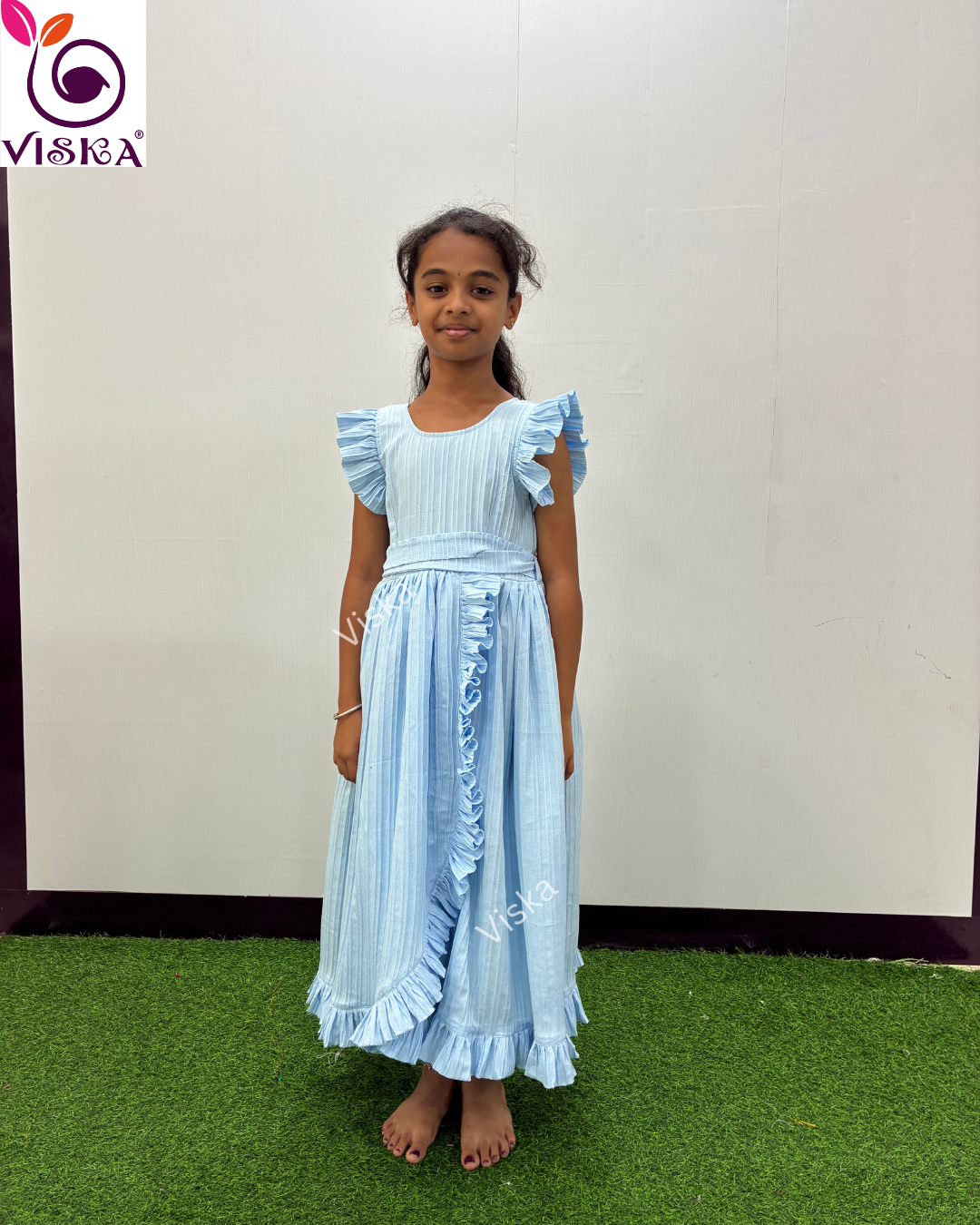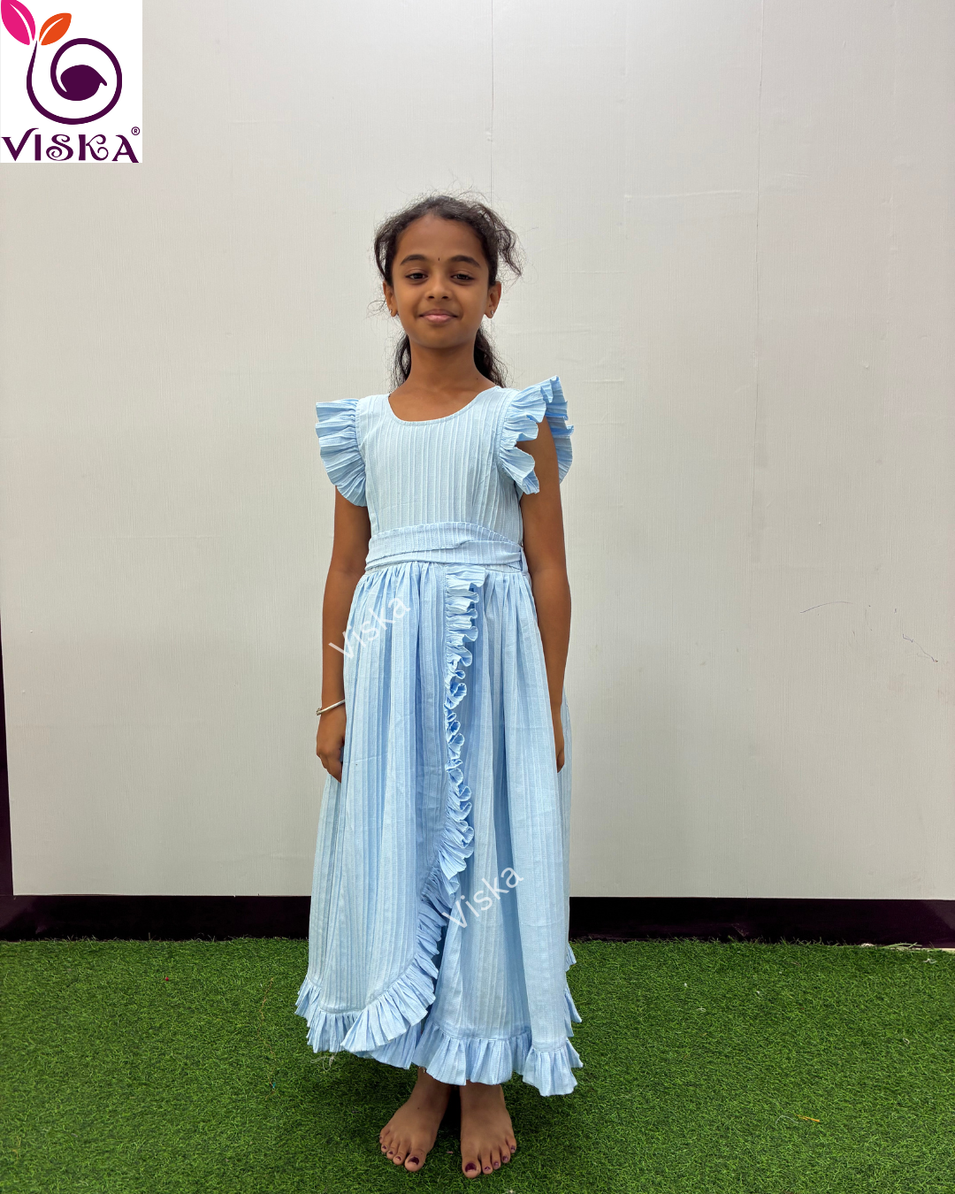 Transform your child's style with Viska's designer frock in stunning lingt Blue, this dress will make her feel like a princess and stand out in any occasion.
