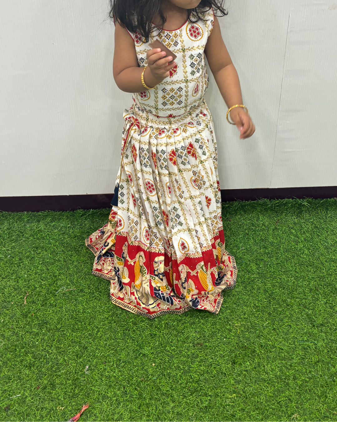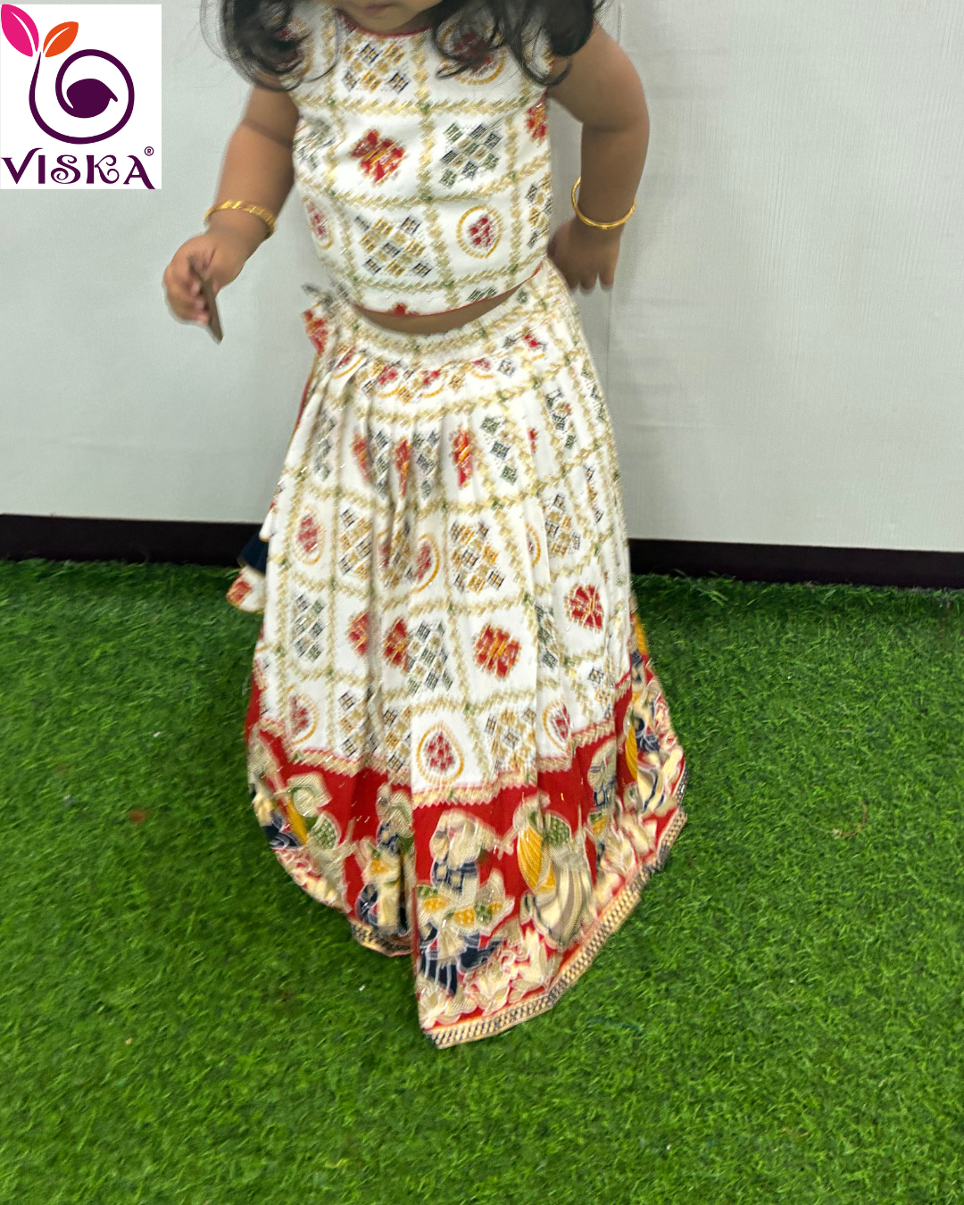Dress your little one in this comfortable Cotton Kalamkari lehenga. Perfect for festive occasions, it combines traditional charm with a playful sparkle, making every twirl a magical moment. Comfortable and stylish, it’s designed to keep your child shining bright all day long.
