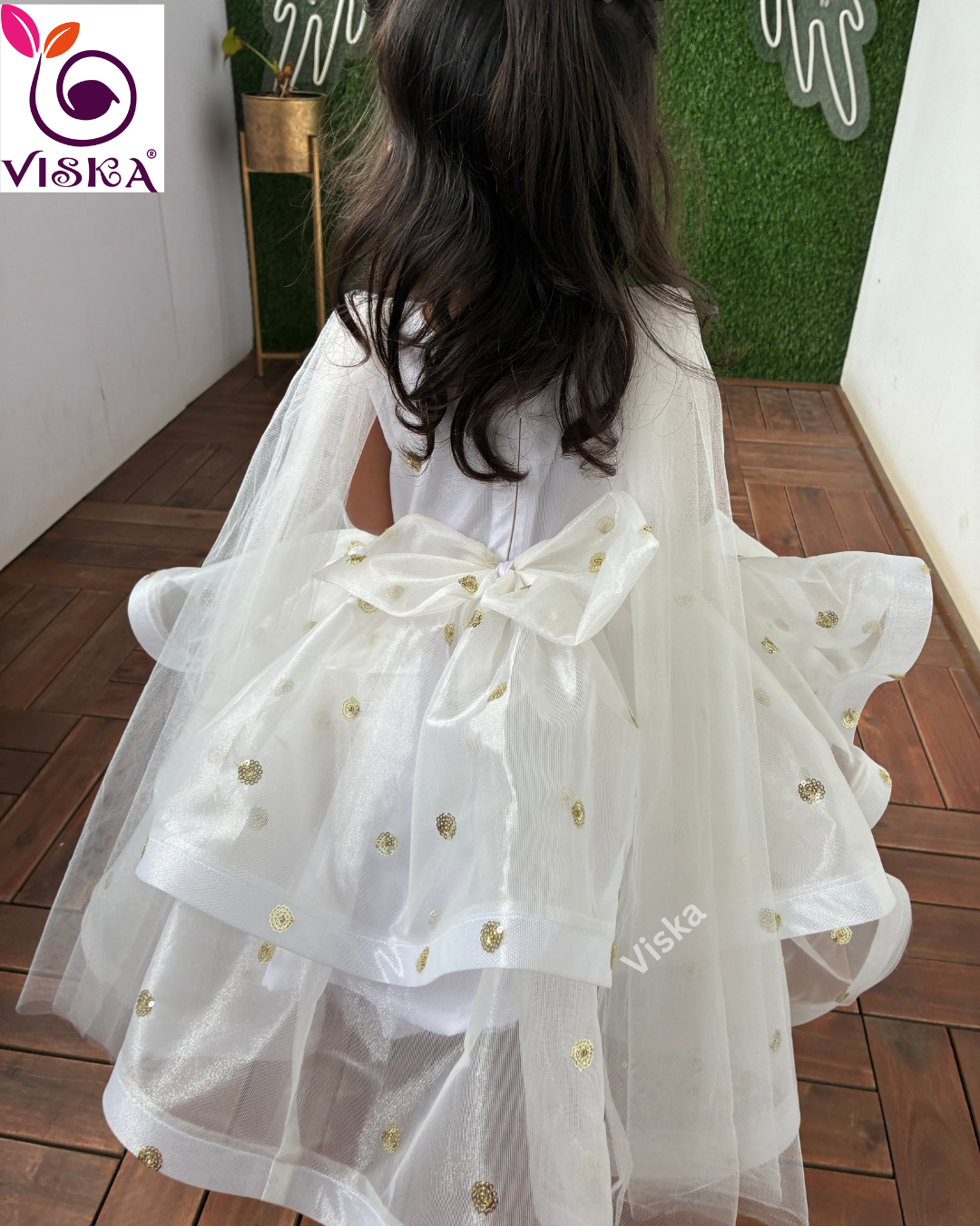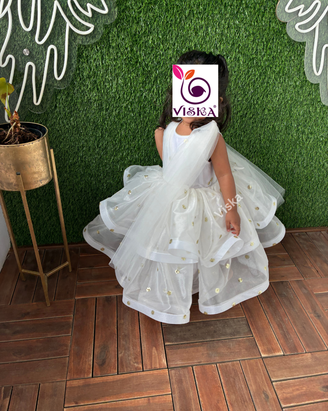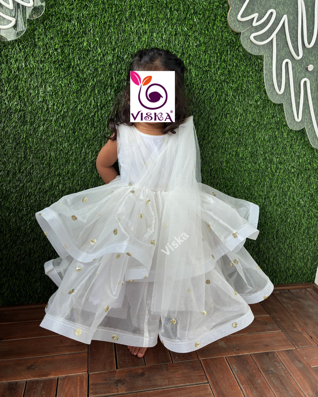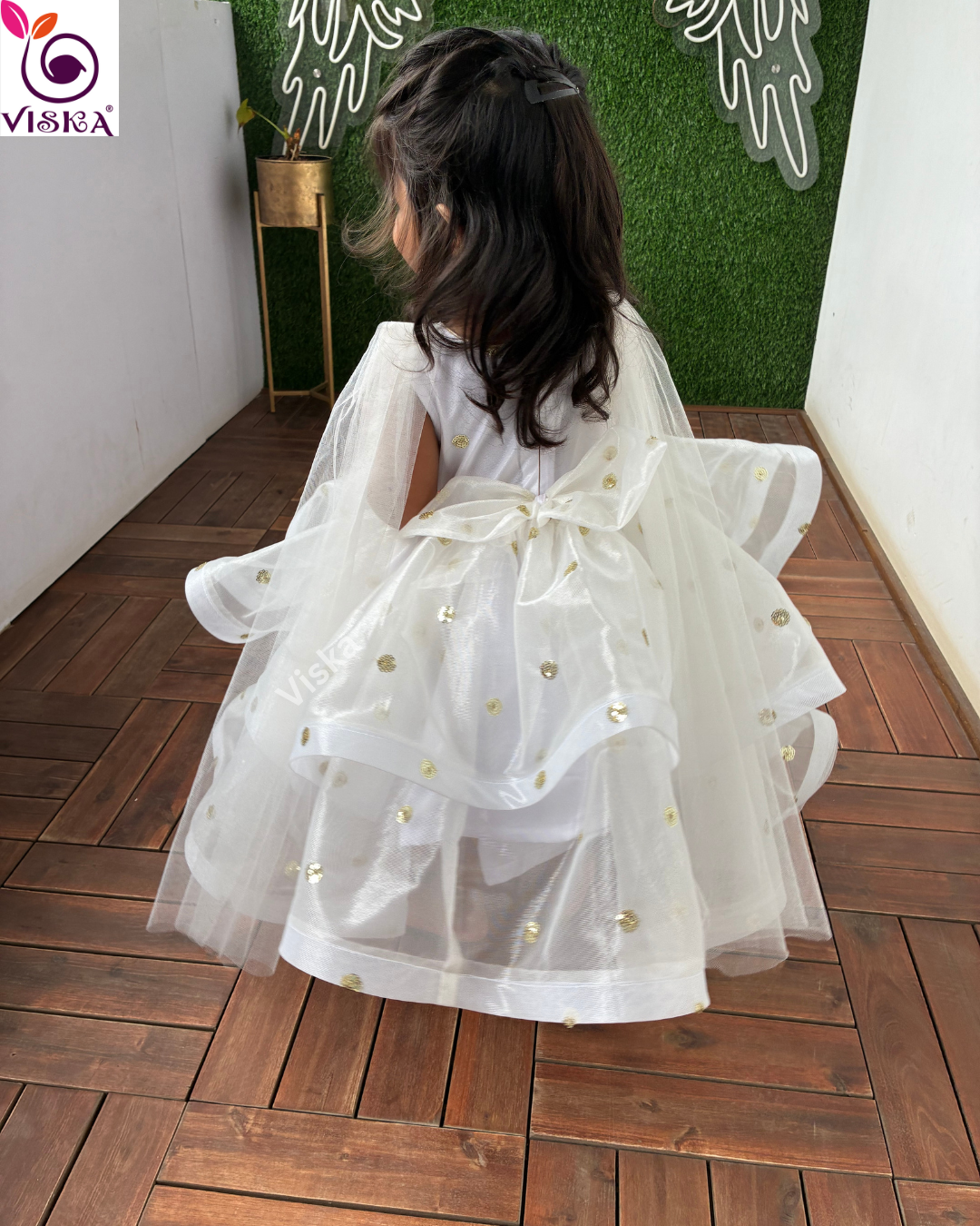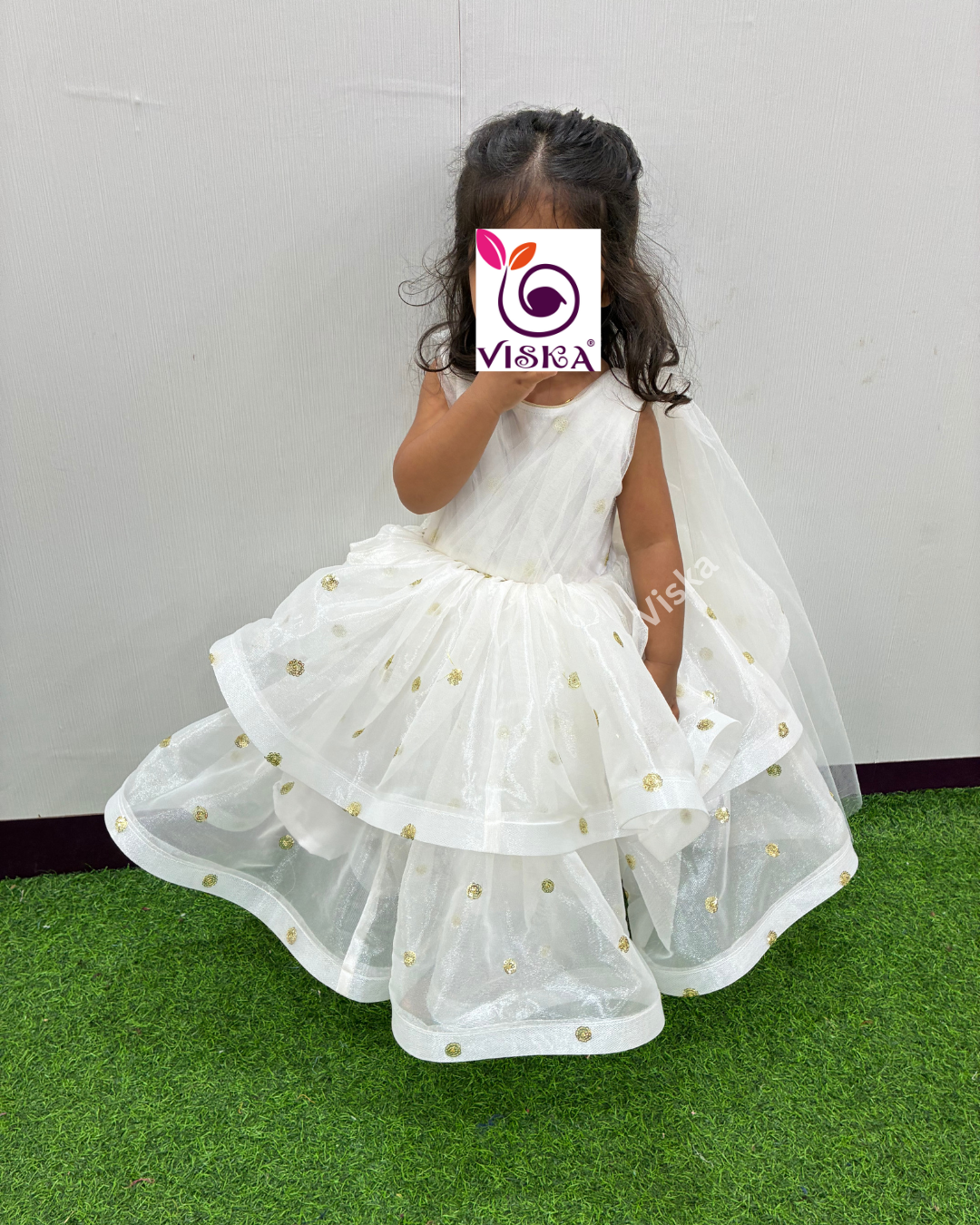 Dress your little one in charm with this Kids Designer Layered White Frock. Its layers add a twirl-worthy flair perfect for parties. Crafted for comfort, this frock lets your child move freely while looking effortlessly stylish. A delightful choice to brighten up any day with ease and elegance.