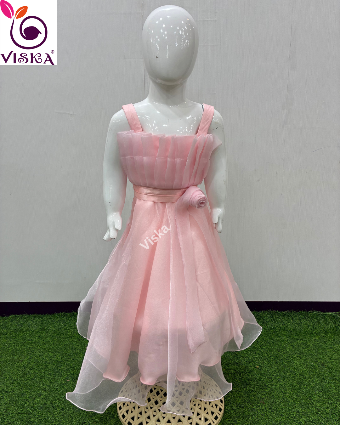 Kids Designer Party Wear Lotus Frock in Baby Pink