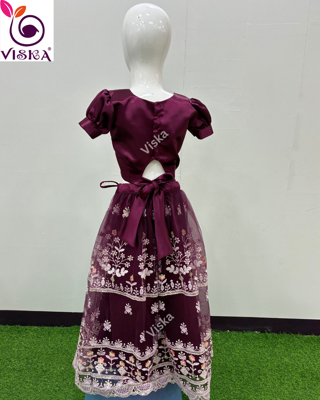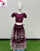 Transform your child's style with Viska's designer fancy Lehenga in Purple and white. This Lehenga is perfect for your little one for any special occasion.