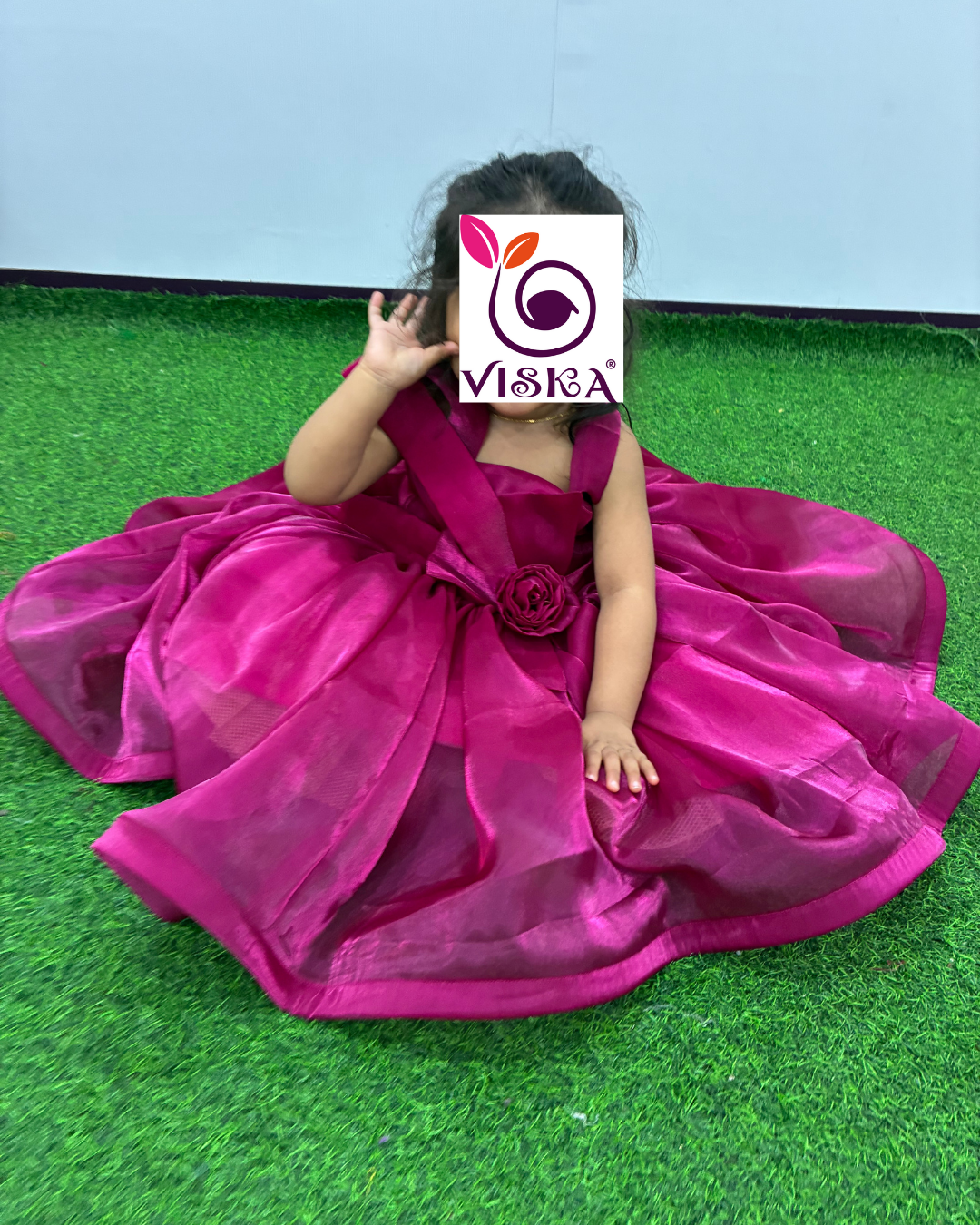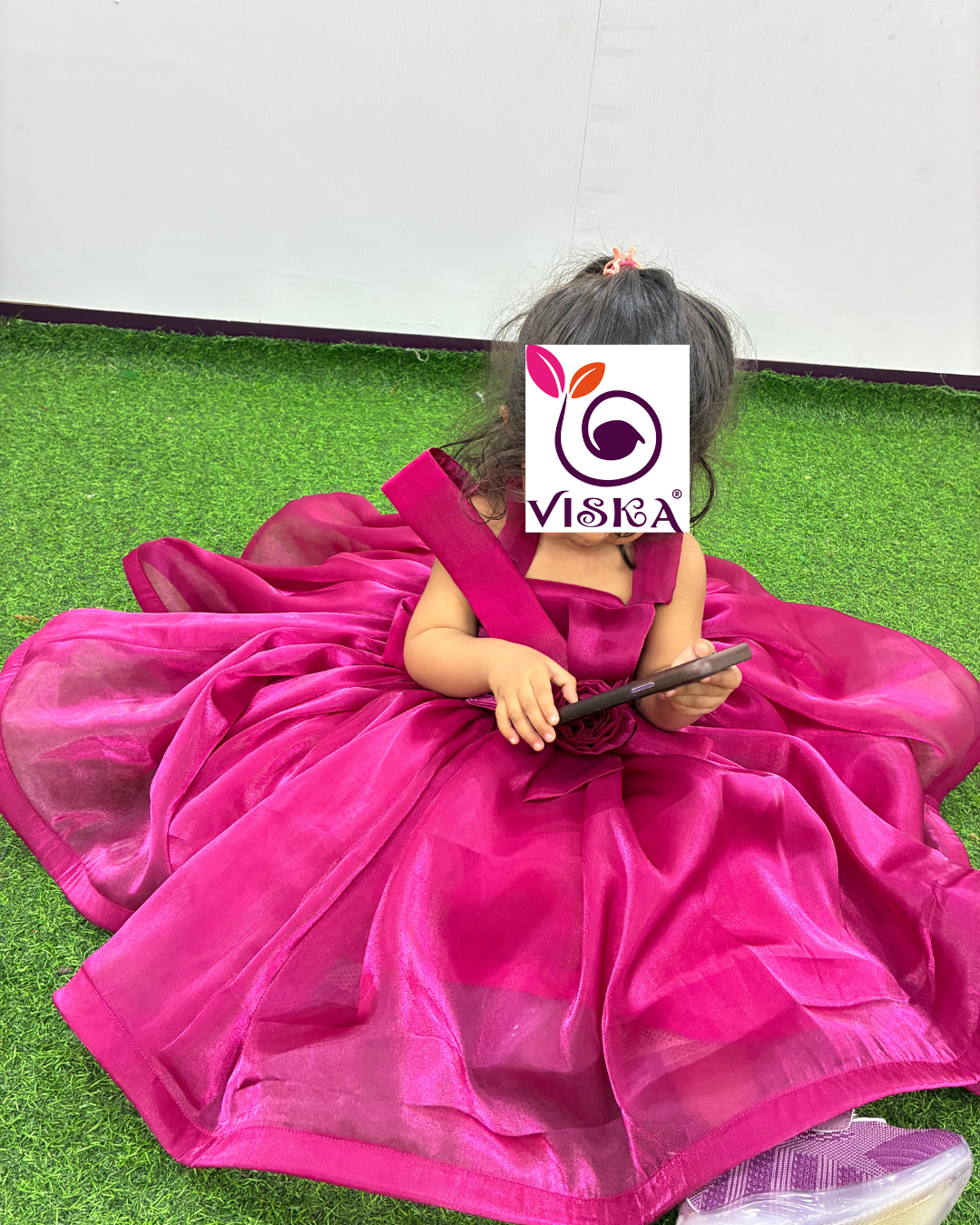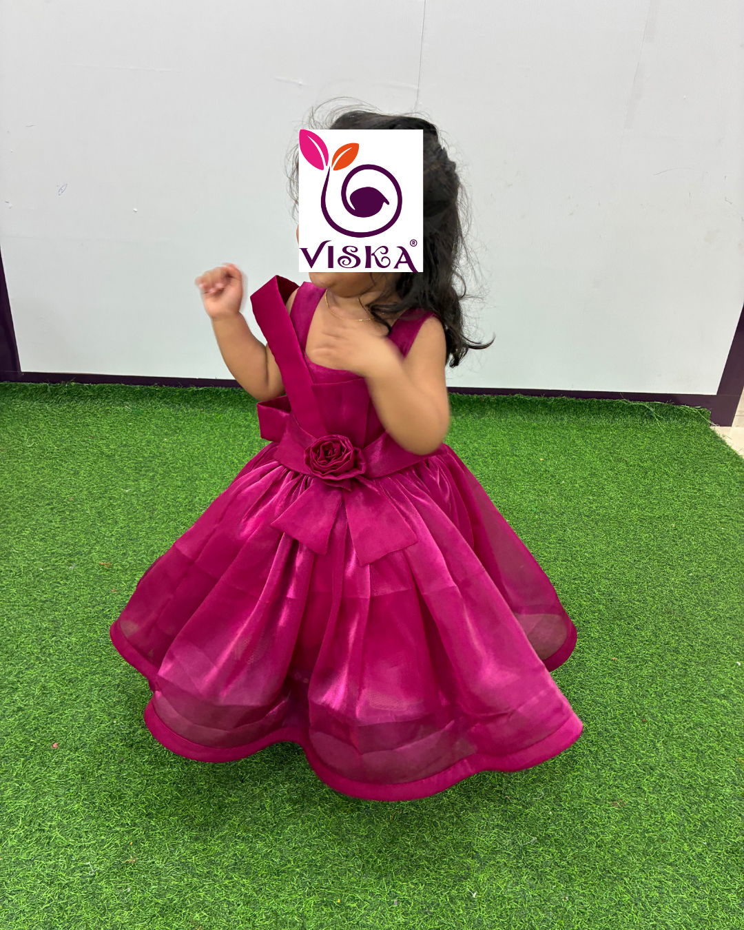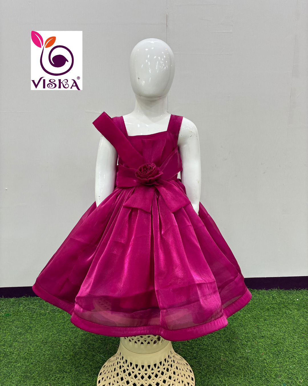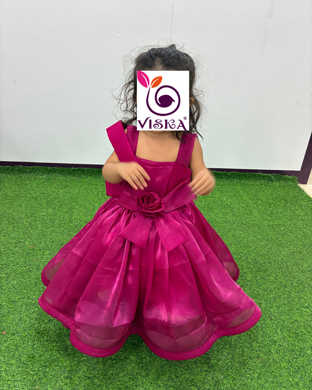 This playful rose pink frock is perfect for your little fashionista’s party moments. Adorned with a lovely flower pattern and uniquely designed shoulders, it brings a fresh and fun twist to party wear. Comfortable and eye-catching, it’s sure to make your child shine with joy!
