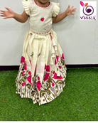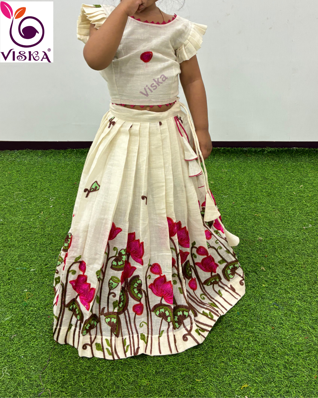 Dress your little one in this comfortable Cotton lehenga, adorned with intricate embroidery. Perfect for festive occasions, it combines traditional charm with a playful sparkle, making every twirl a magical moment. Comfortable and stylish, it’s designed to keep your child shining bright all day long.