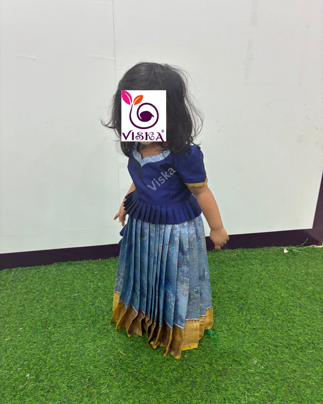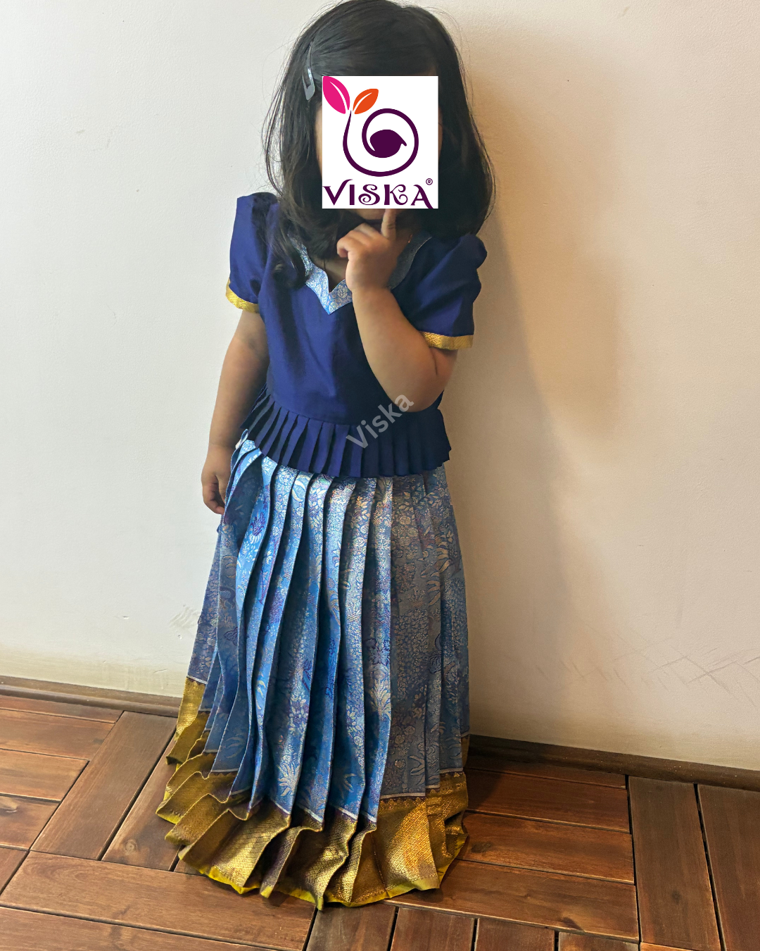 Transform your child's style with Viska's designer Silk Lehenga in blue and Sky Blue. This Lehenga is perfect for your little one for any special occasion.