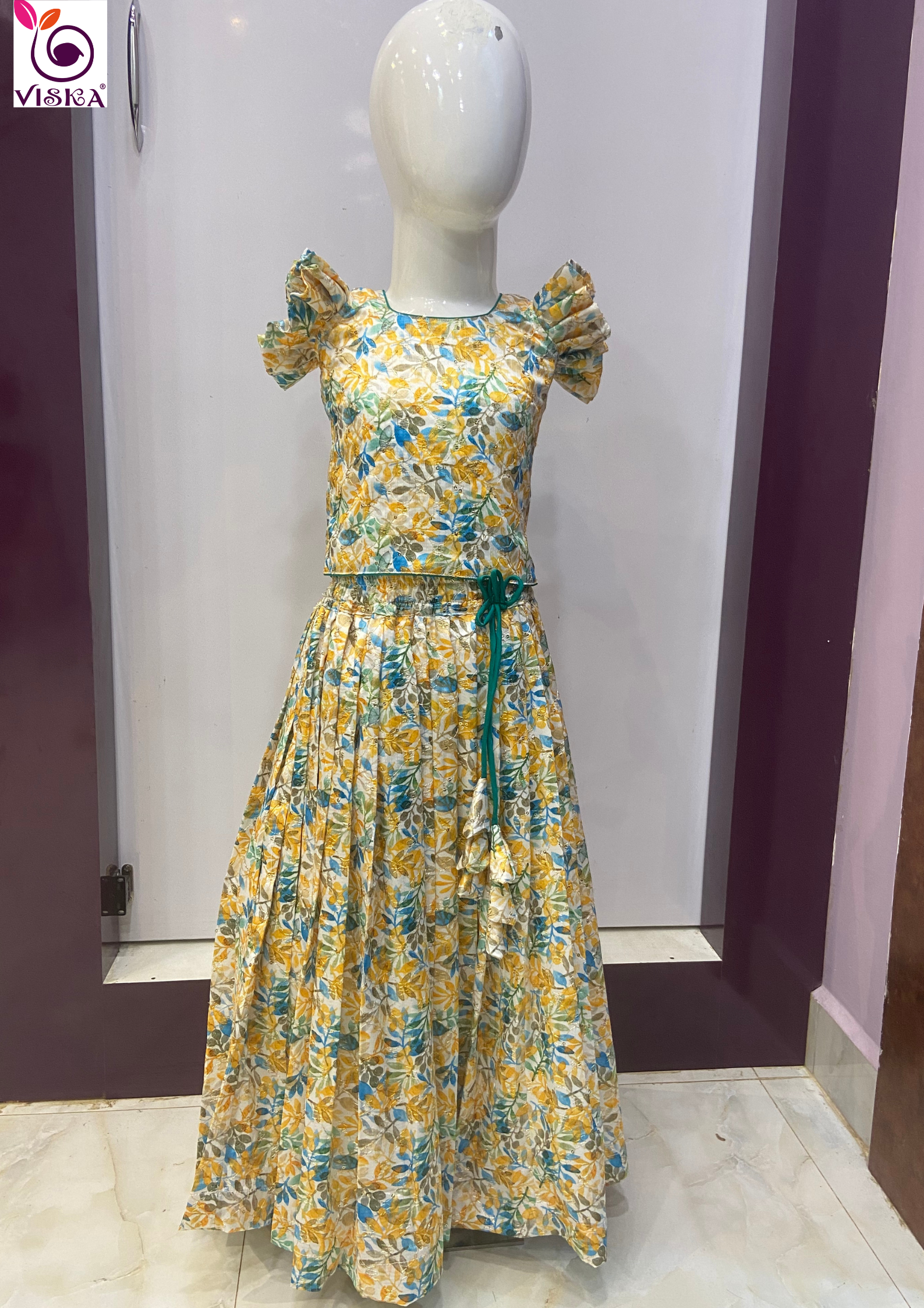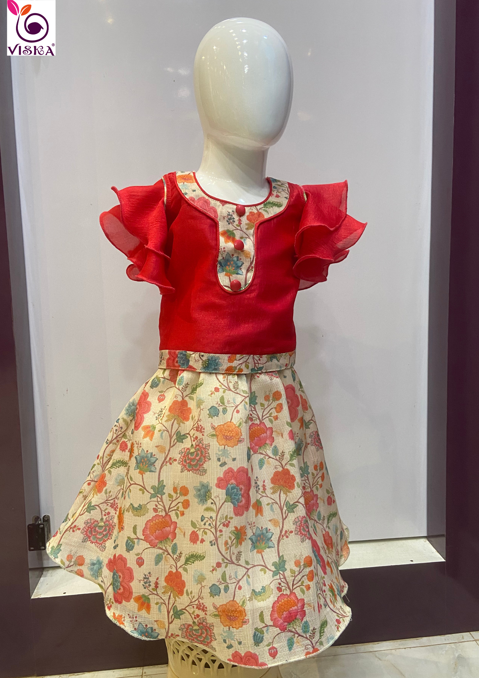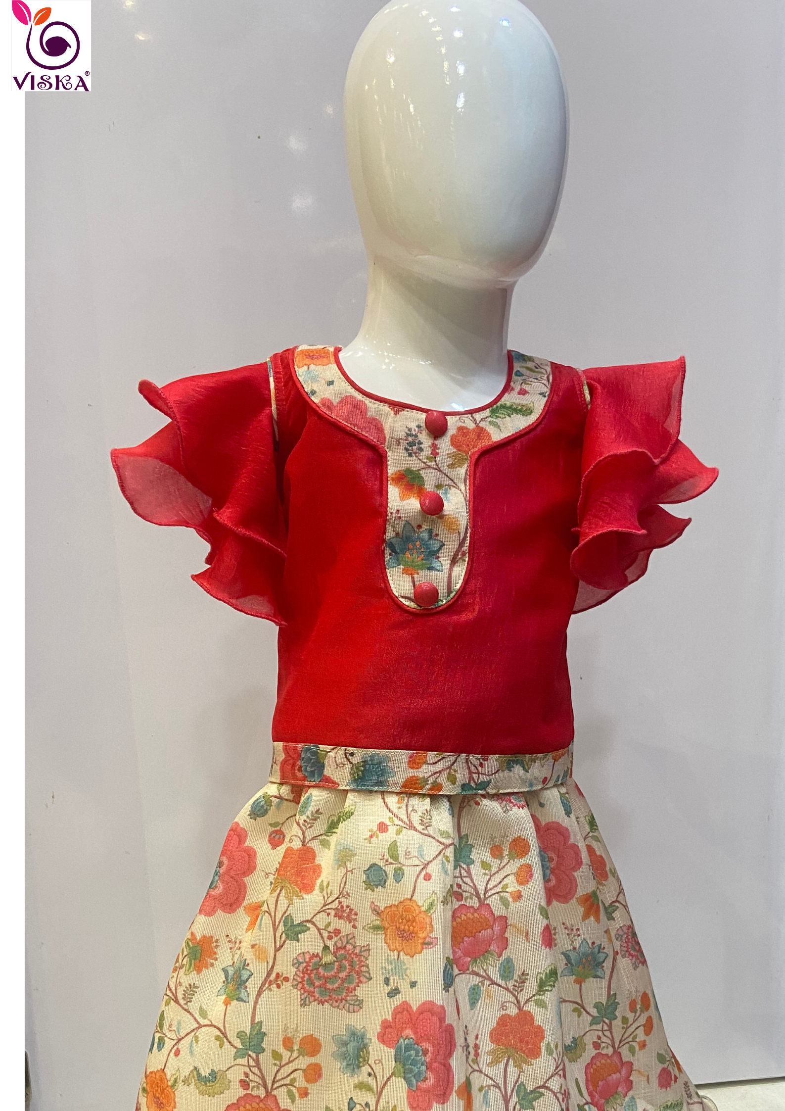 Traditional Beauty Kids Lehenga with ruffle sleeve blouse