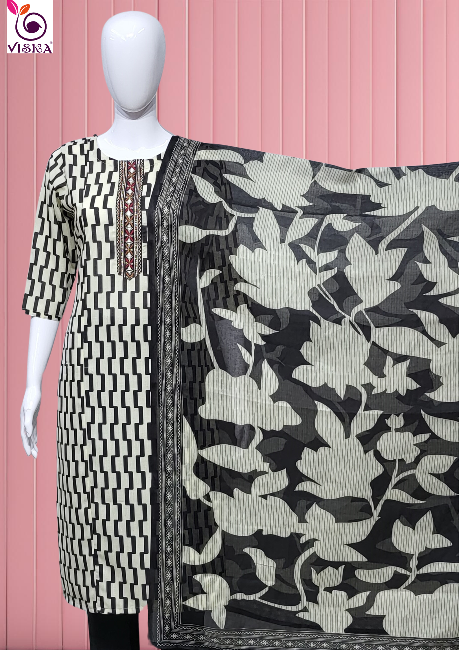 Feel Linen Readymade salwar suit off-white & black and straight cut pant & dupatta