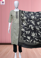 Feel Linen Readymade salwar suit off-white & black with polka dots and straight cut pant & dupatta