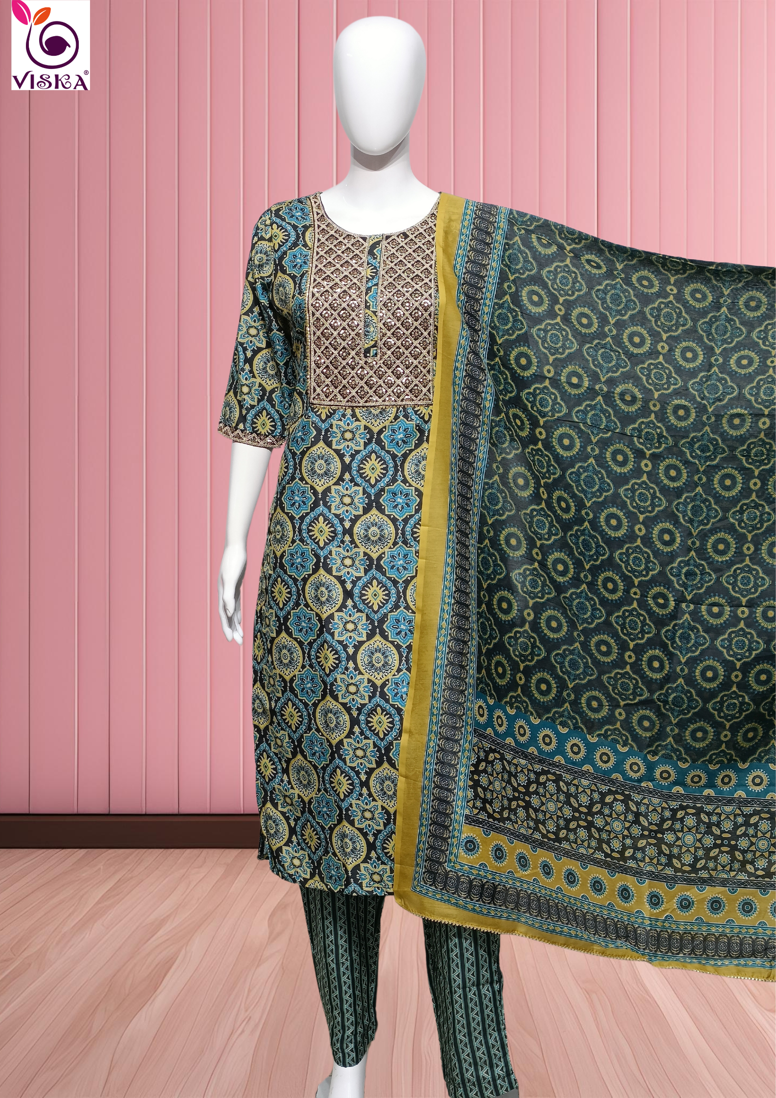 Muslin Silk readymade salwar suit black & blue and straight cut pant & dupatta