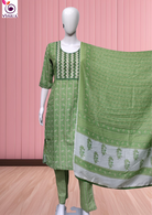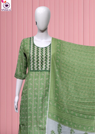 Muslin Silk readymade salwar suit Green & white with embroidery work and straight cut pant & dupatta