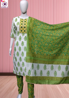 Muslin Silk readymade salwar suit White & Green and straight cut pant & dupatta