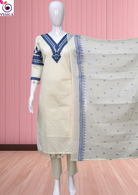 Pure cotton Readymade salwar suit off-white & blue with V neck embroidery work and straight cut pant & dupatta