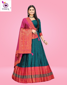 Drape yourself in the splendor of Viska's Semi-Stitched Lehenga, boasting vibrant hues and a luxurious thick zari border. The ensemble is elevated with a dupatta and blouse in contrasting tones, merging tradition and modernity seamlessly. Experience the epitome of style at a reasonable price. Indulge in Indian opulence with Viska—shop now to radiate elegance effortlessly. Don't miss the chance to redefine your ethnic wardrobe with this captivating collection. Seize the moment and embrace timeless charm. Your journey to sophistication starts here; explore Viska's Style Lehenga today!
