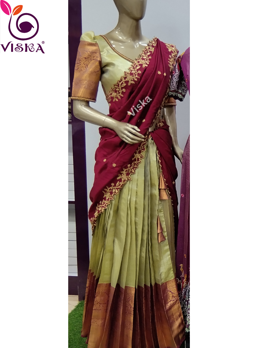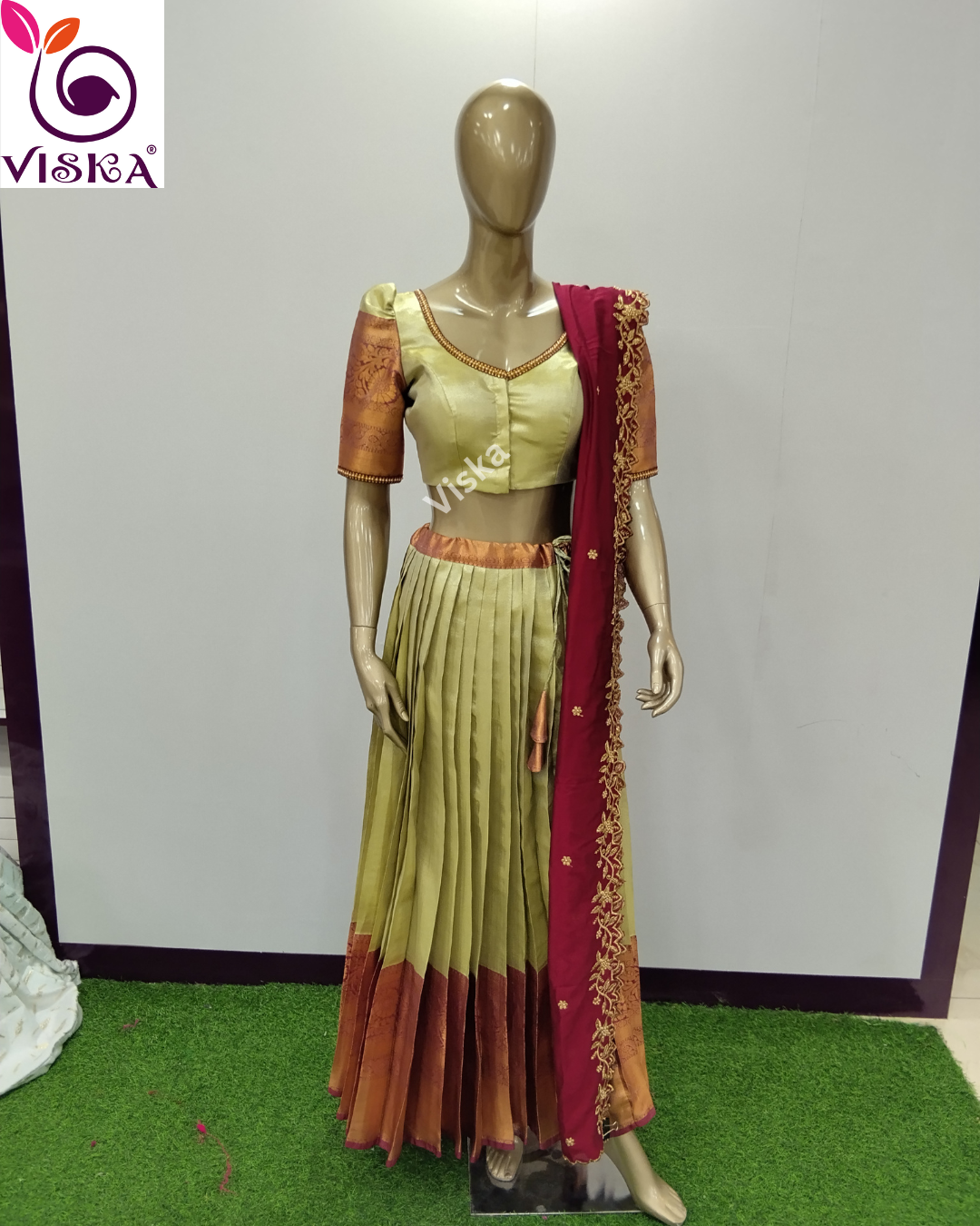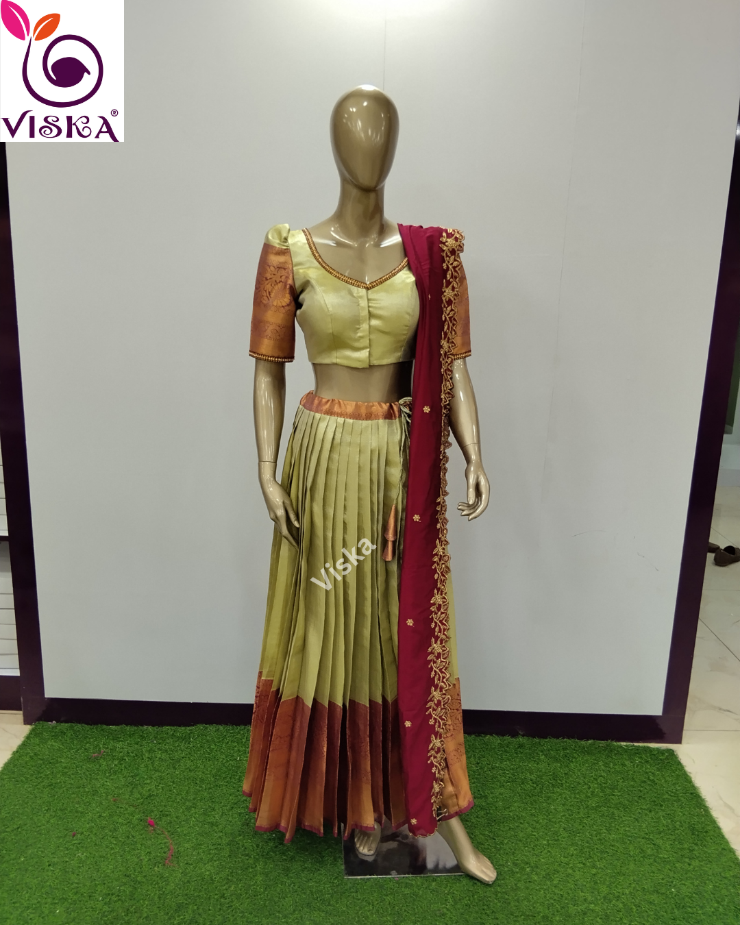 Elevate your ethnic wardrobe with the Viska brand Silk Lehenga. Featuring intricate aari work and a stunning Brown color combination, it comes with a gorgeous georgette dupatta. Perfect for any occasion, this lehenga will surely make you stand out.