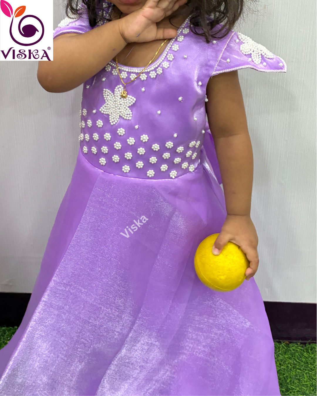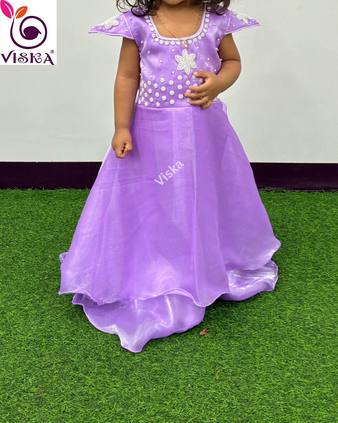 Transform your child's style with Viska's designer frock in Light Purple with Pearl hand embroidery work. This frock is perfect for your little one for any special occasion.