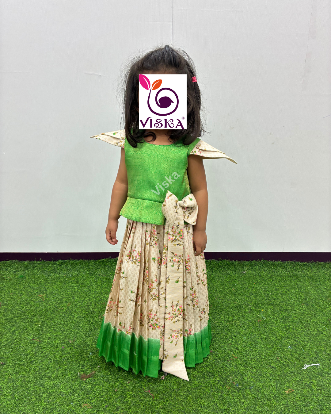 Transform your child's style with Viska's designer Lehenga in Green and Cream. This Lehenga is perfect for your little one for any special occasion.