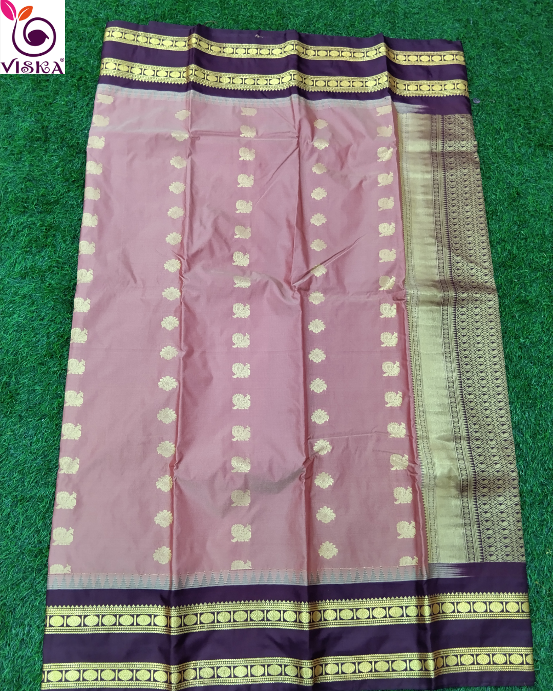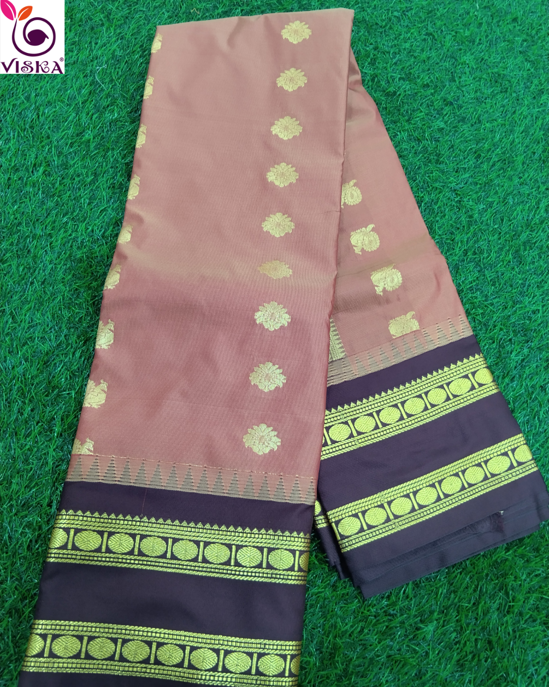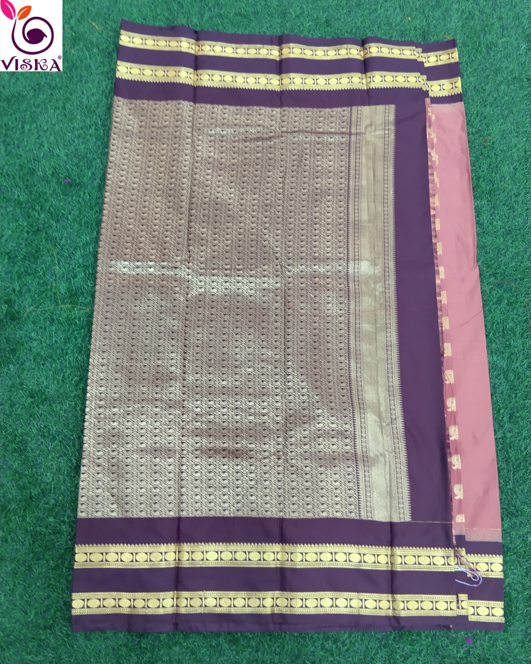 Korvai Border: Silk Saree Onion Pink with rich Pallu and brown kuttu border