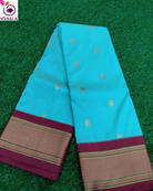 Korvai Border: Silk Saree Sky Blue with rich Pallu and brown kuttu border