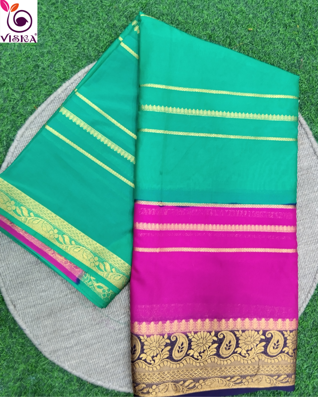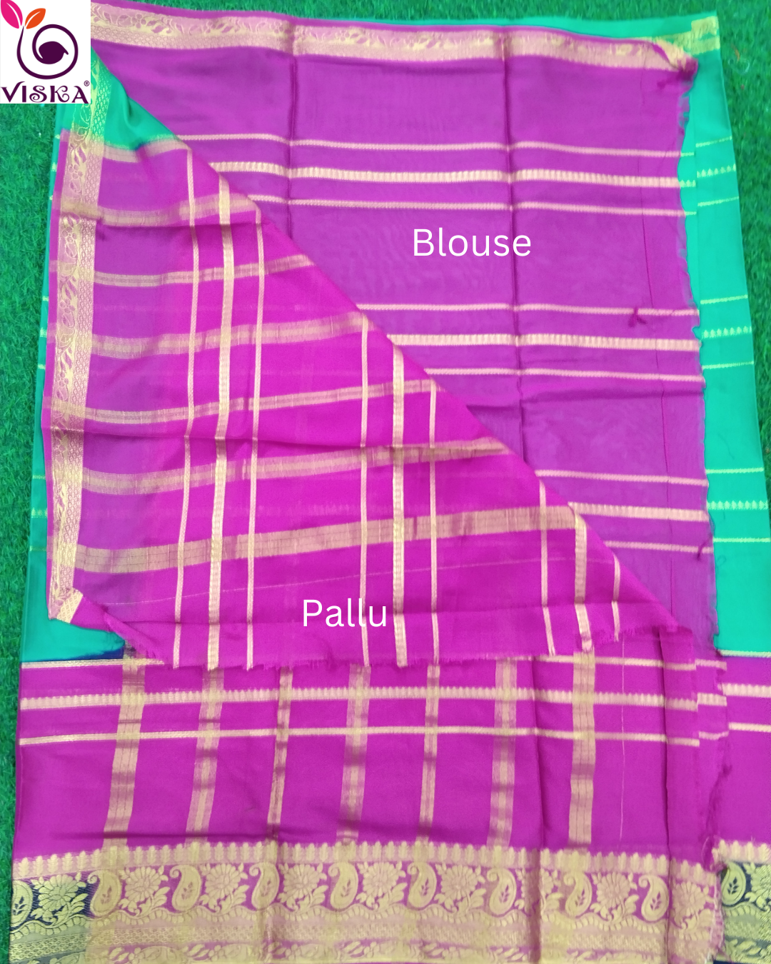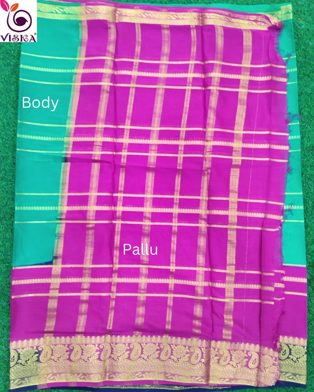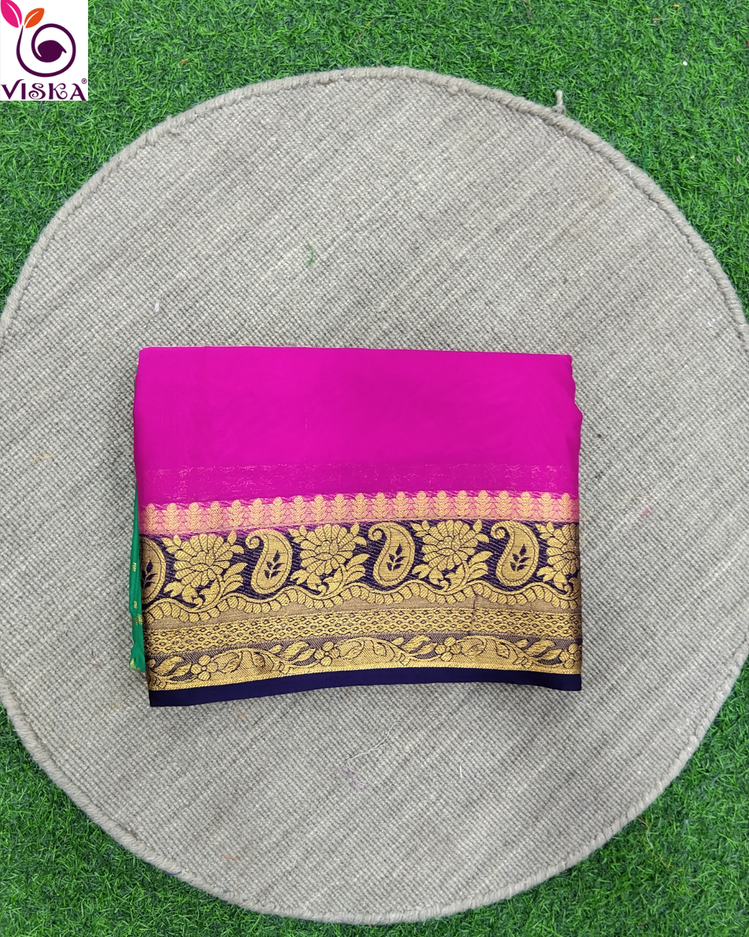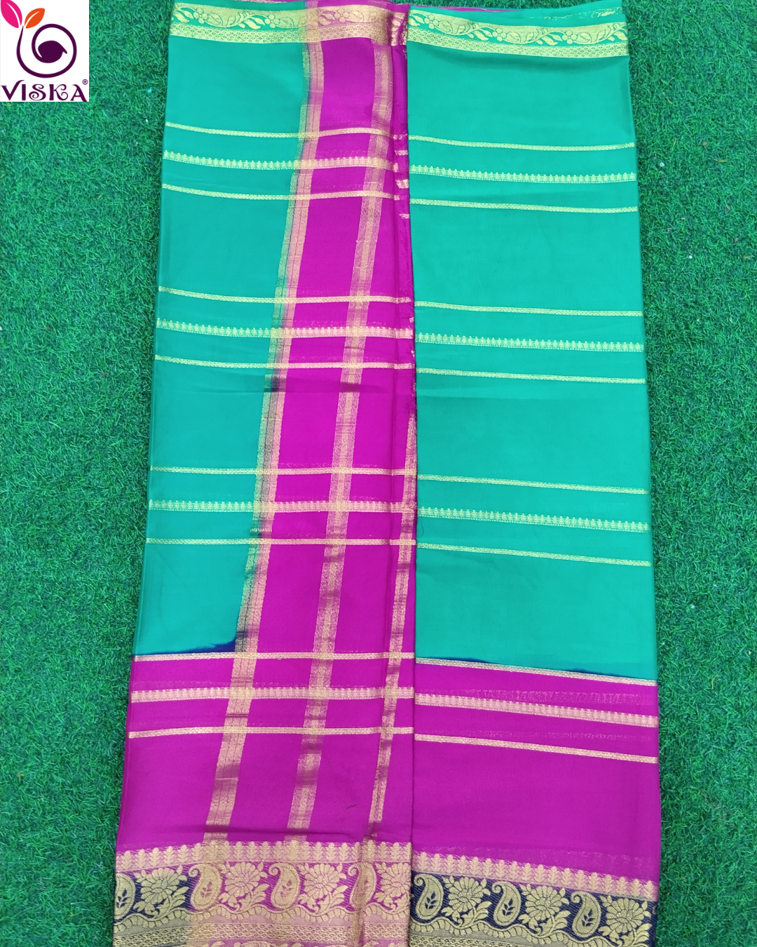 Mysore Crepe Silk Saree Teal and Rose Pink