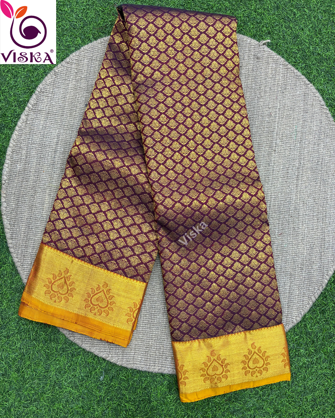 Pure Kanchipuram Silk Saree Maroon with all-over buttas and Mustard Yellow zari border