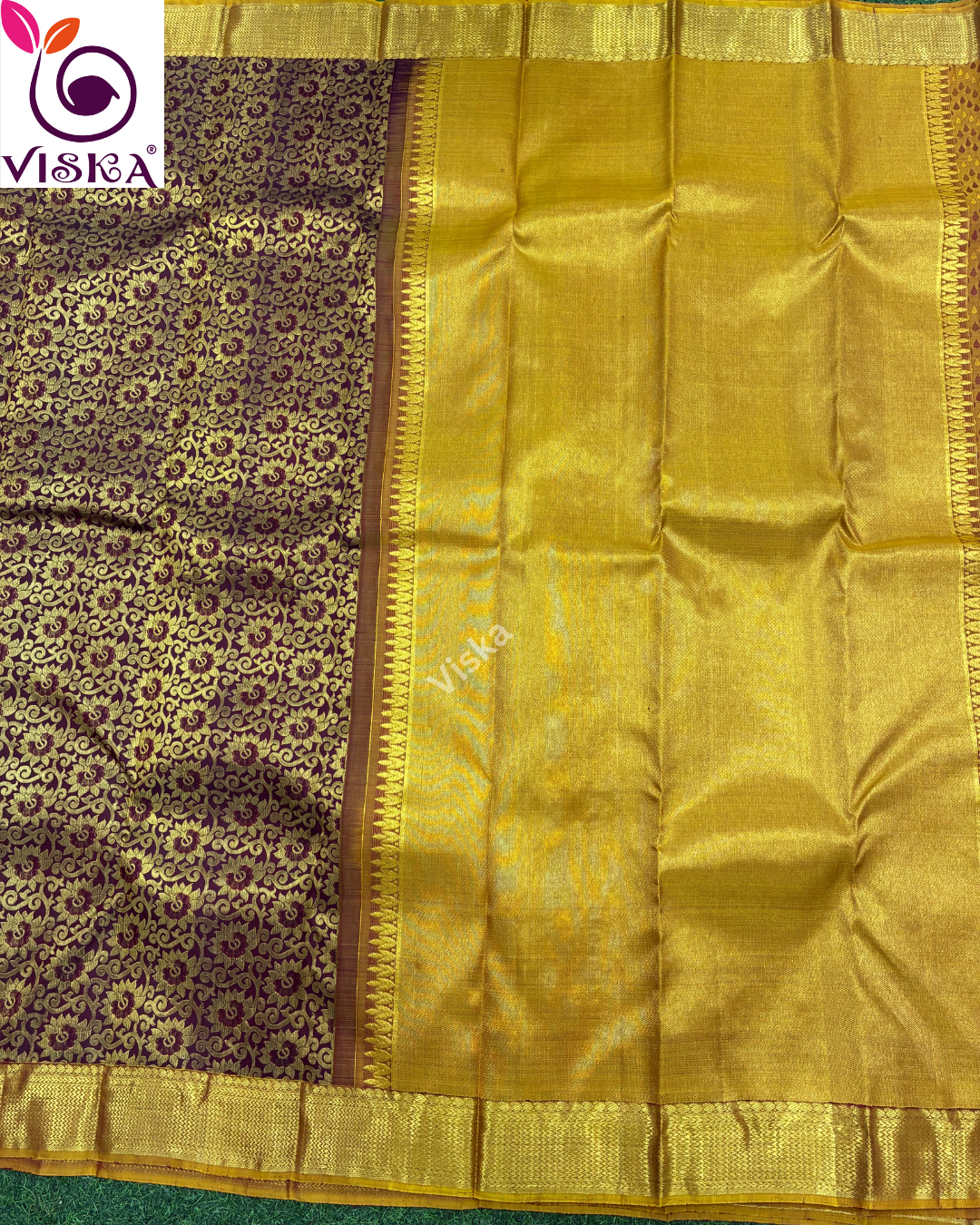 Pure Kanchipuram Silk Saree Maroon with all-over floral weaves and zari woven border