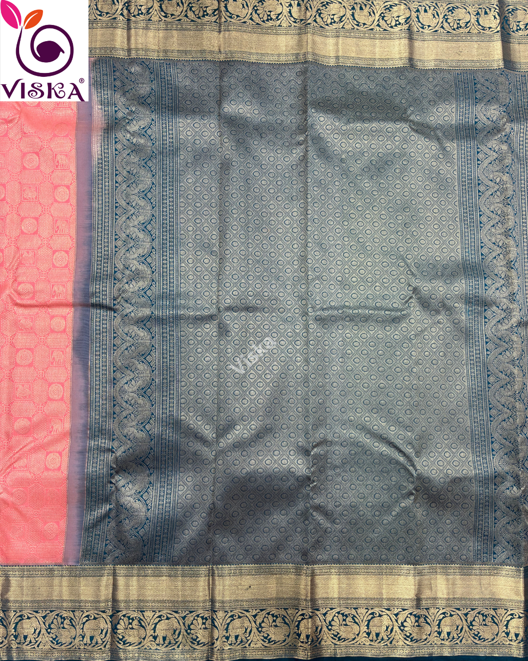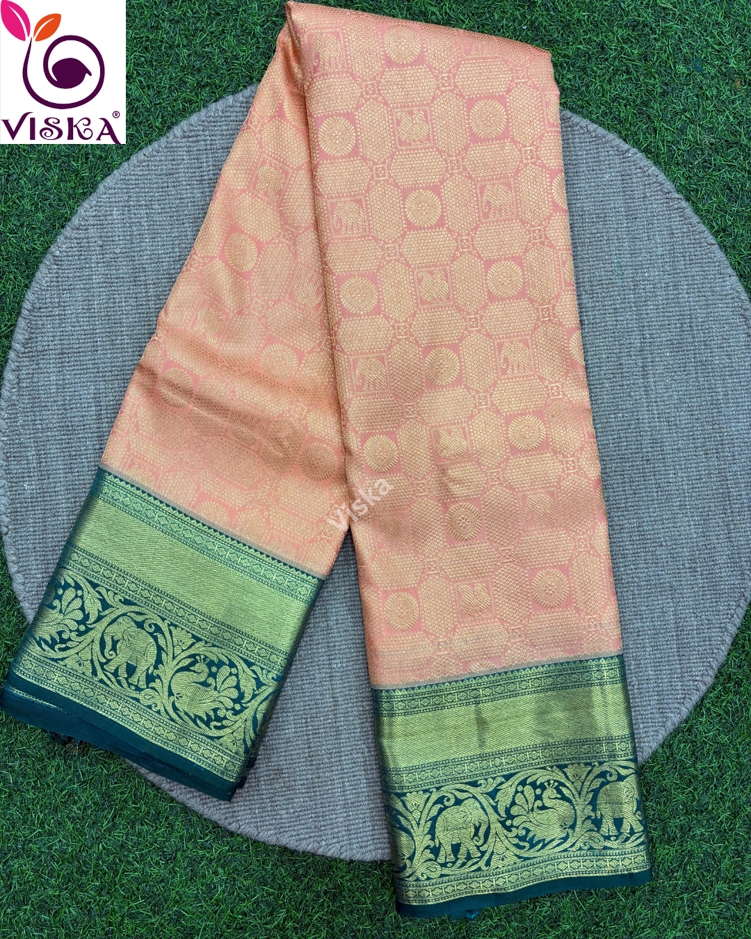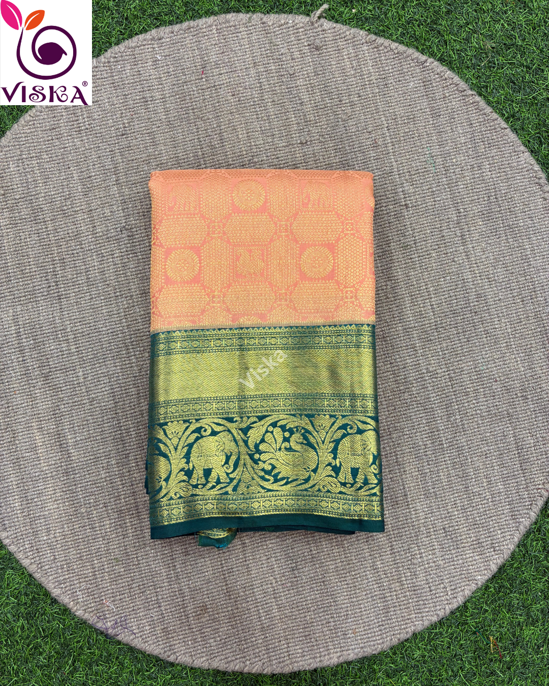 Pure Kanchipuram Silk Saree Pinkish orange with zari woven eual border