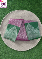 Pure Kanjivaram Silk Saree Purple and Green with all-over floral weaves and zari woven border