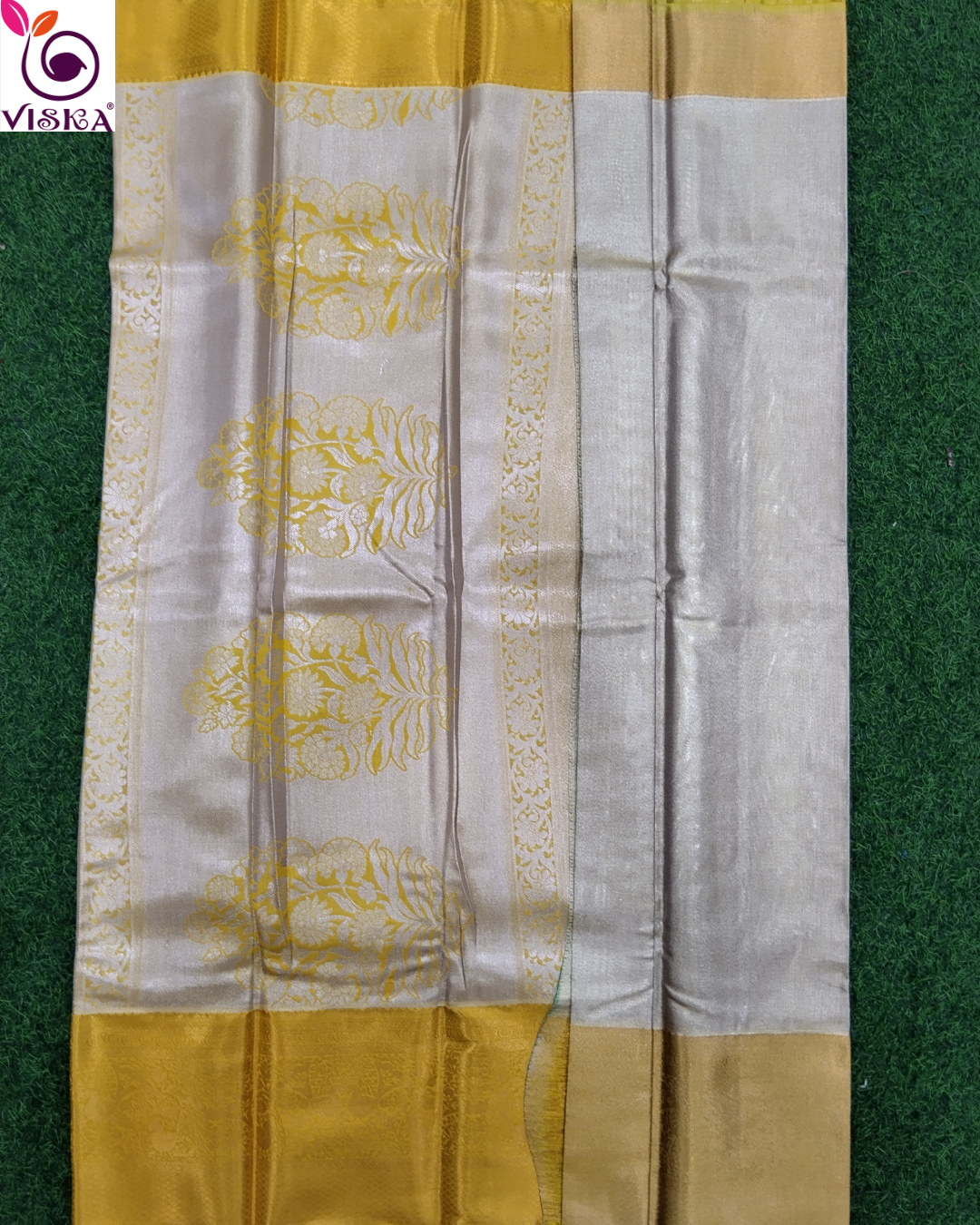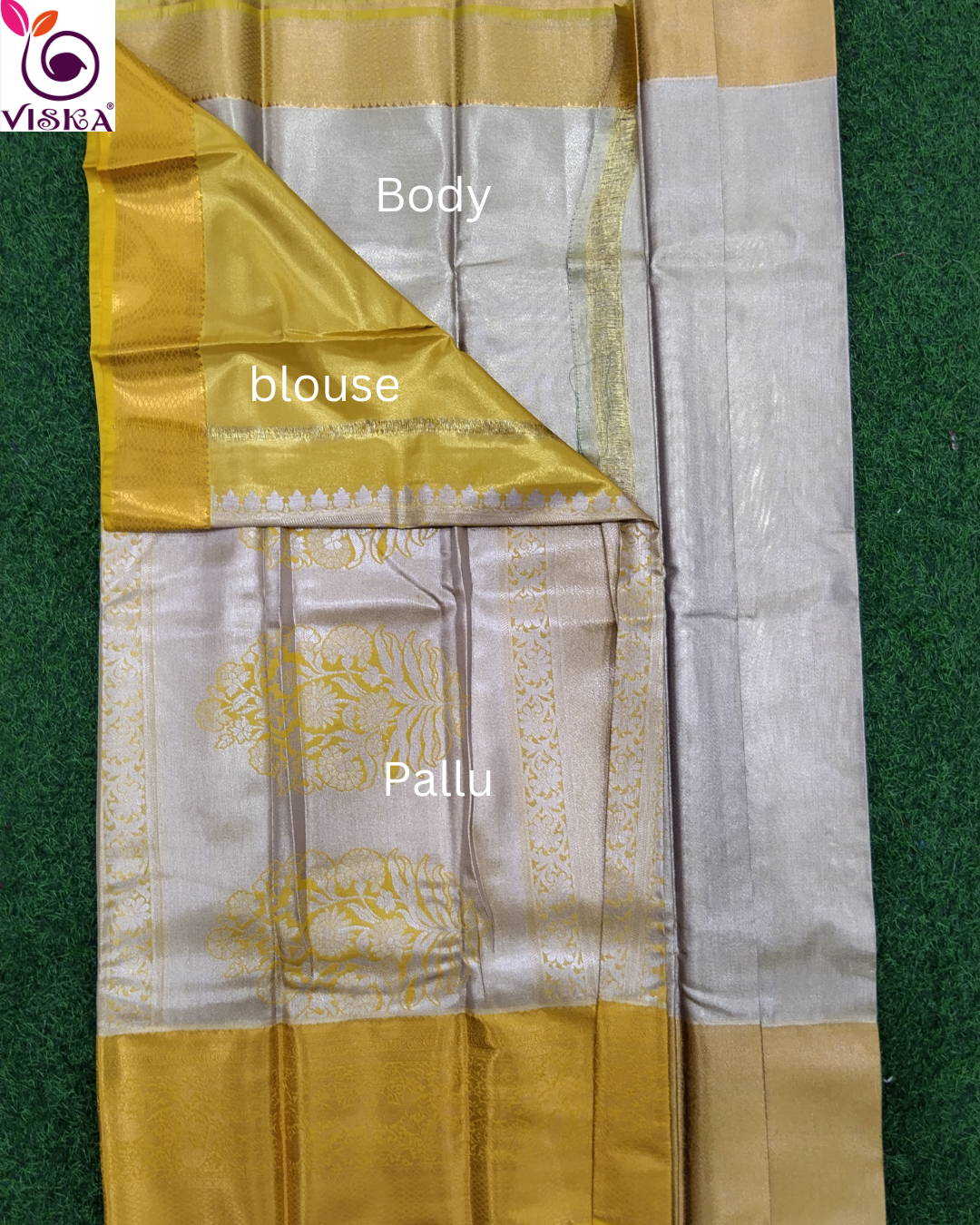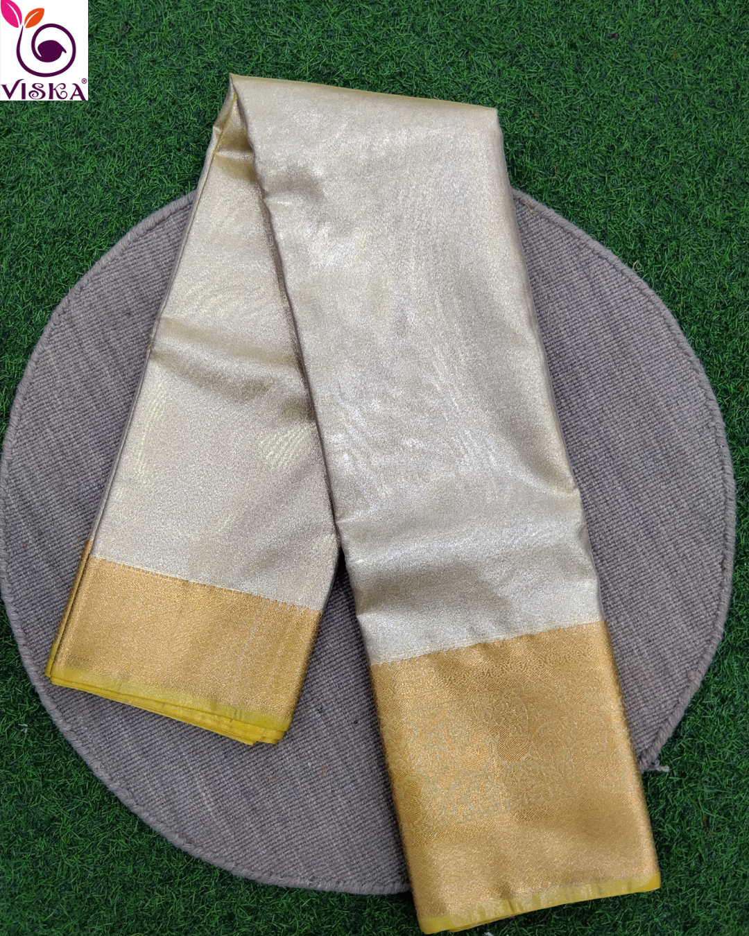 Viska Zari Tissue Saree with rich Golden Yellow Pallu and zari woven border