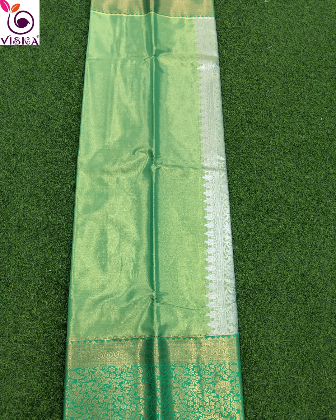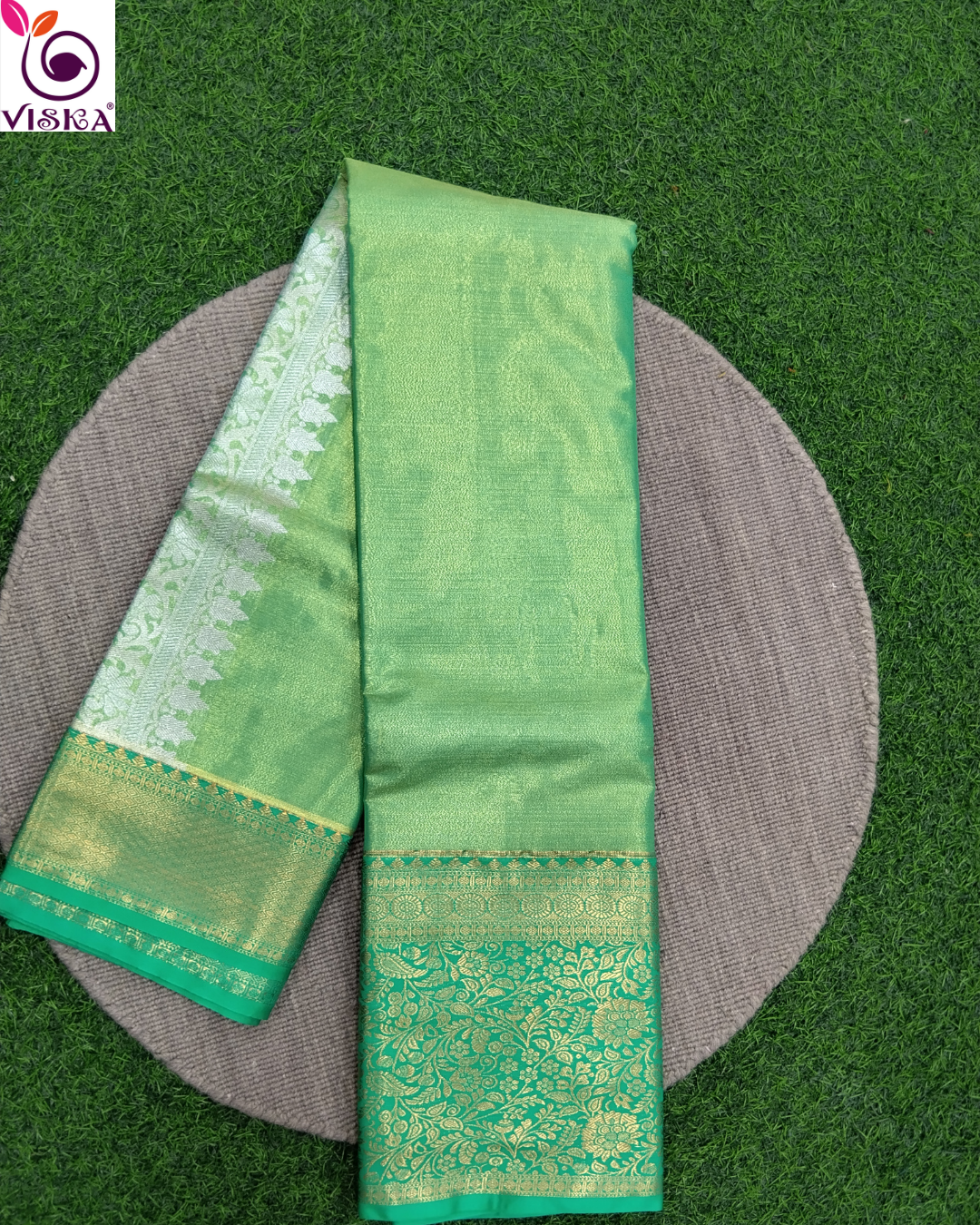 Kanjivaram Plain Silk Saree Green with rich contrast Pallu and zari woven border