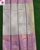 Kanjivaram Plain Silk Saree Light Gold and Lavender with rich Pallu and long zari woven border