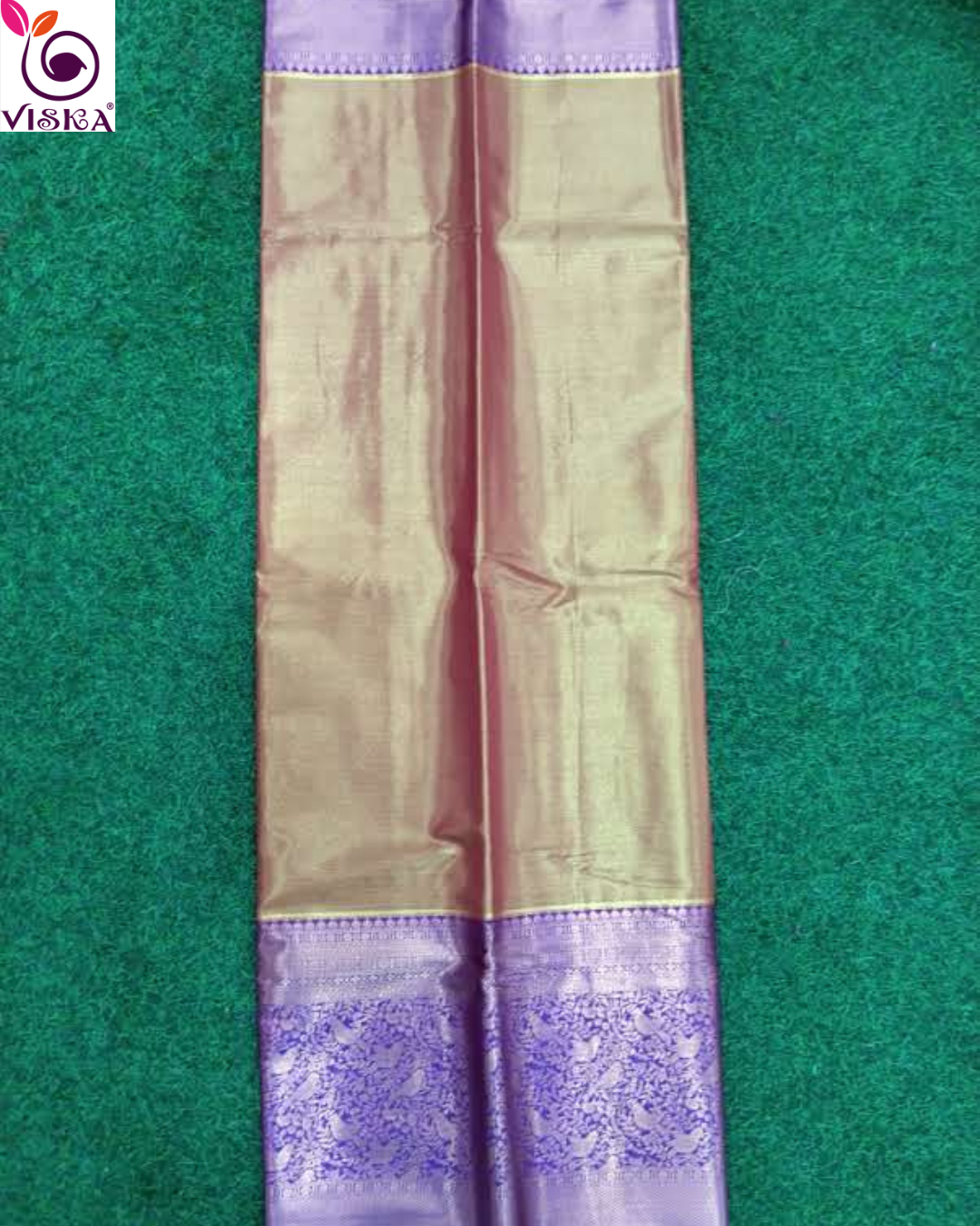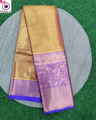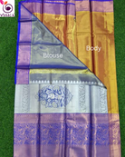 Kanjivaram Plain Silk Saree Mustard yellow and Violet with rich Pallu and long zari woven border