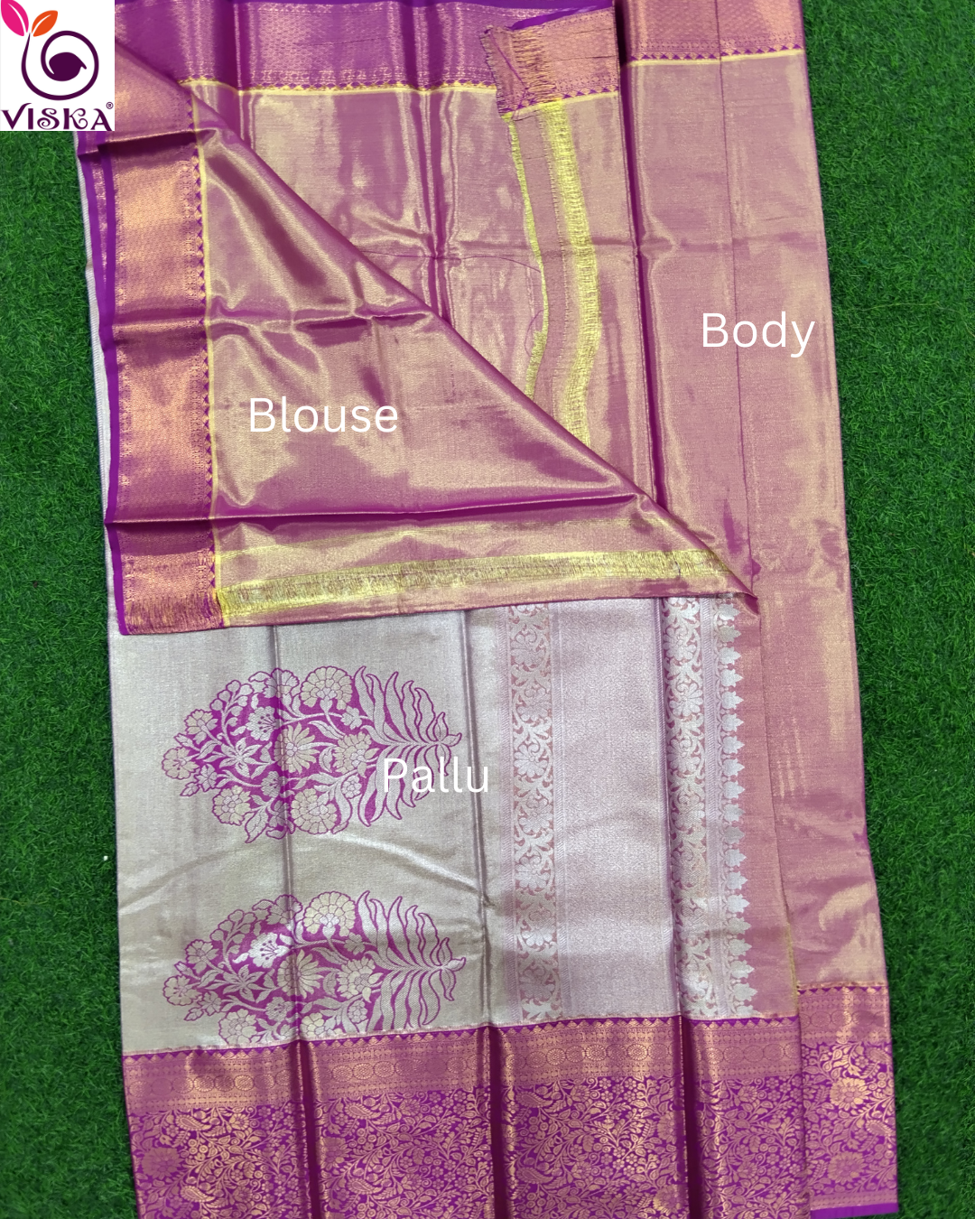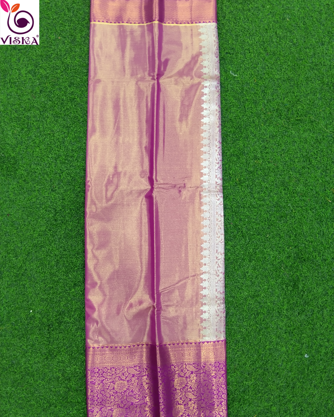 Kanjivaram Plain Silk Saree Pink and purple with rich Pallu and zari woven border