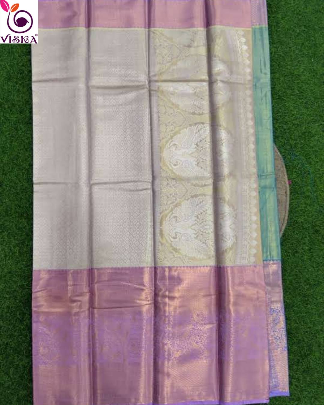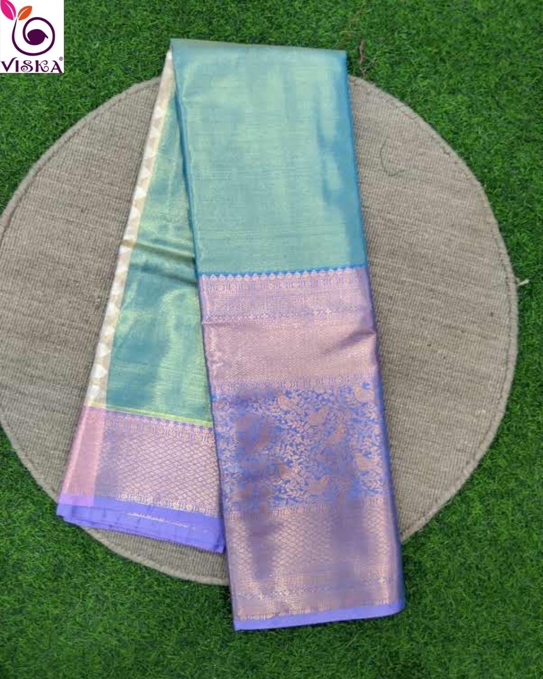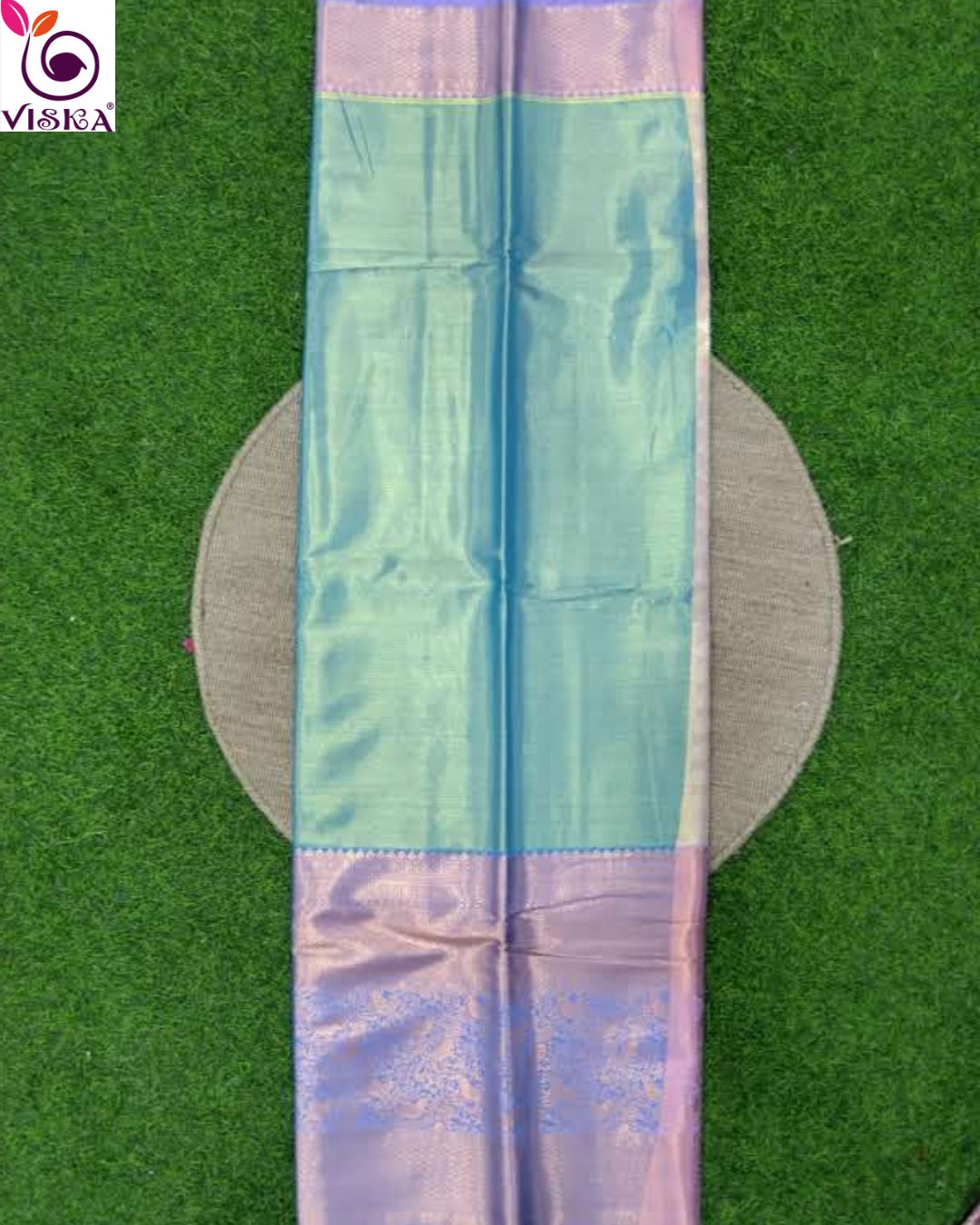 Viska's customized Kanjivaram plain silk saree in Teal boasts a rich pallu and long zari woven border. Plain saree and high-quality silk make it a perfect choice for any occasion. Elevate your wardrobe with this timeless Saree.