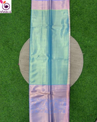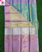 Kanjivaram Plain Silk Saree Teal with rich Pallu and long zari woven border